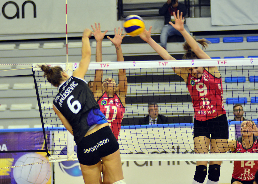 Vestel Venüs Sultanlar Liginde ilk hafta deplasmanda Çanakkale Bld.Sporu 2-3 mağlup eden temsilcimiz Seramiksanspor 2. hafta karşılaşmasında Yıldırım Beyazıt Spor Salonunda Bursa Büyükşehir Belediyespor karşında 3-2 galip geldi. Seramiksanspor : Müge, Sinem, Mısra, Ceyda, Natasa, Malaseviç, Işıl, Rida, Yeşim, Meryem, Bayramova, Sedef, SılaBursa B.Bld. : Yaren, Aylin, Gizem, Ergül, Charlote, Fatma, Yvon, Aleksandra, Nilay, Aslı, Emiliya, Nurhan, Merve, Cansu Setler: 23-25, 25-22, 25-23 1.Set: Mücadeleye hızlı başlayan temsilcimiz Seramiksanspor etkili oyunuyla ilk sette teknik molaya 12-9 önde girdi. İlk teknik moladan toparlanarak dönen konuk takım Bursa B.Bld. temsilcimiz karşısında 7-11’lik bir seri yakalayarak skoru 19-20’e getirdi Son bölümü çekişmelere sahne olan ilk setti Bursa B.Şehir Bld. 23-25 kazandı. (0-1) 2. Set: Takım halinde sahada tutuk bir görüntü çizen Seramiksanspor’da koç Doğancı 6-9 gerideyken ilk molayı aldı. Moladan etkili dönen temsilcimiz 5-0’lık seri yakalayarak durumu 11-9’a getirdi ve teknik molaya 12-10 üstün girdi.Sahada doğru işleri yapmaya başlayan Seramiksanspor taraftarını da arkasına alarak maça ağırlığını koymaya başladı ve seti 25-22 kazandı. (1-1) 3. Set: İki takım adına kıran kırana geçen 3. sette Seramiksanspor teknik molaya 12-10 önde girdi. Seramikspor bulduğu serilerle farkı açsa da yaptığı basit hatalarla rakibinin sette kalmasını sağladı ve farklı bir türlü açamadı. Son saniyeleri kıran kırana geçen üçüncü setti Seramiksanspor 25-23 kazanarak durumu 2-1’e getirerek maçta öne geçti. 4. Set: Karşılıklı hatalar içinde başlayan dördüncü sette konuk takım Bursa B.Şehir Bld. teknik molaya 9-12 önde girdi. Hücumda bulduğu şansları iyi değerlendiren Bursa B.şehir Bld. takımı skoru 17-22’e getirdi ve set adına büyük bir avantaj sağladı. NURULLAH ÇANKAYA