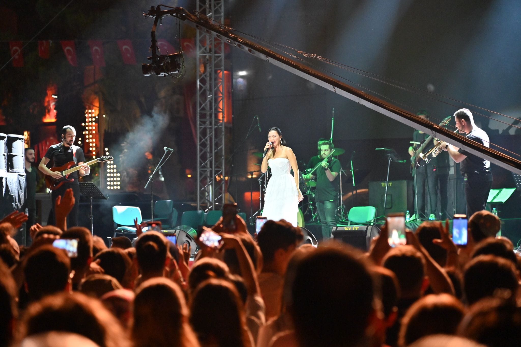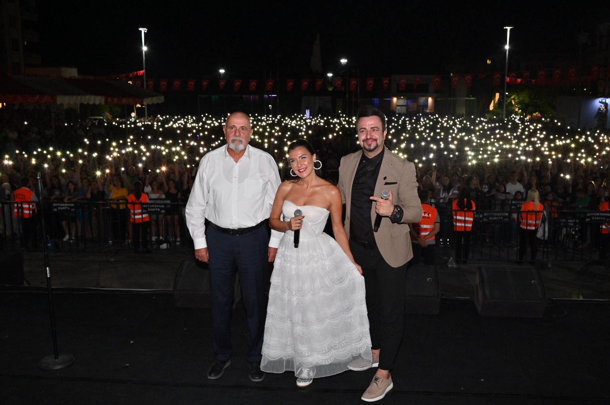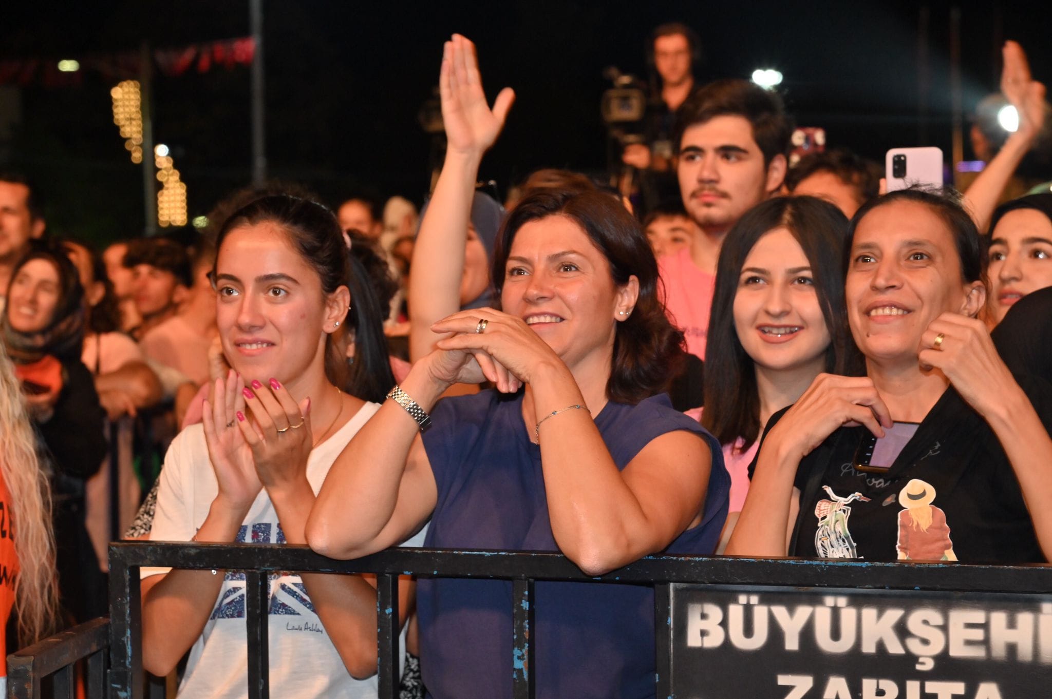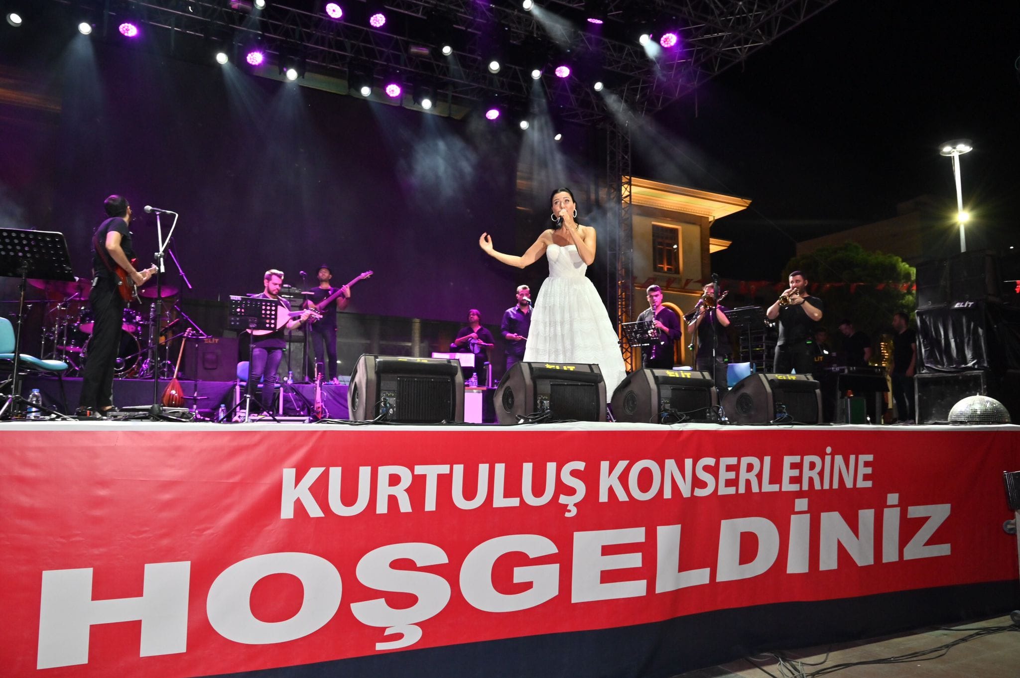 MANİSA Büyükşehir Belediyesi tarafından düzenlenen Kurtuluş Konserleri kapsamında ünlü oyuncu ve müzisyen Şevval Sam, Manisalı hayranlarıyla buluştu. Cumhuriyet Meydanı’nı tıklım tıklım dolduran Manisalılarla birlikte şarkıları seslendiren sanatçıya, konser sonunda çiçek takdim edildi.