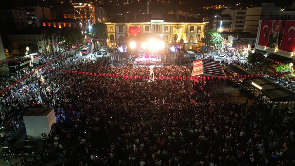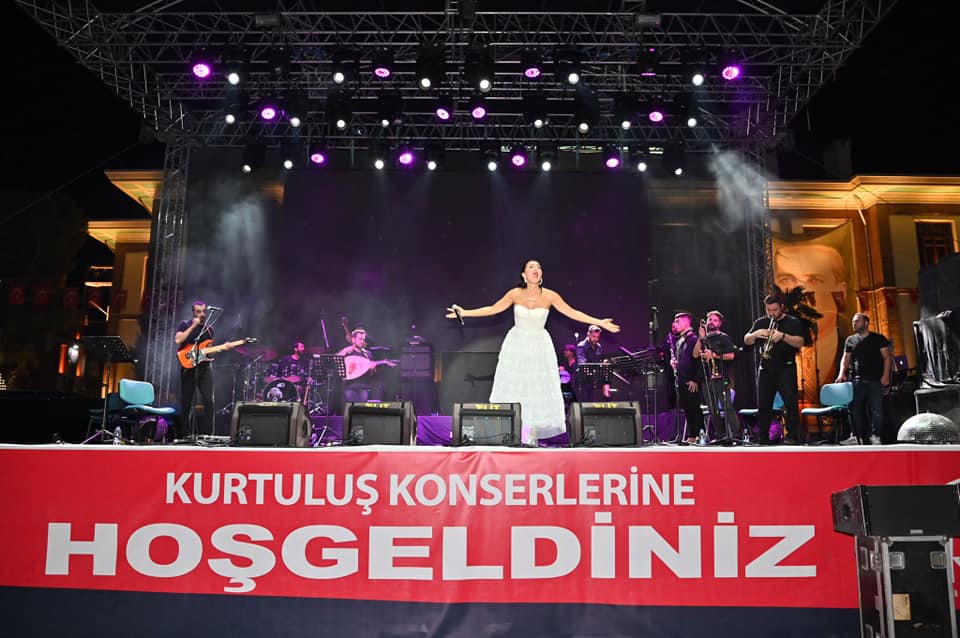Manisa Büyükşehir Belediyesinin kurtuluşun 100’üncü yılına özel olarak hazırladığı Kurtuluş Konserleri kapsamında, ünlü oyuncu ve müzisyen Şevval Sam, Cumhuriyet Meydanı’nda konser verdi. Konseri Manisa Büyükşehir Belediye Başkanvekili Mehmet Palabıyık, Başkan Danışmanı Nursel Ustamehmetoğlu, Daire Başkanları, siyasi parti temsilcileri ve on binlerce Manisalı ilgiyle takip etti. Türk Sanat Müziği parçalarıyla konserine başlayan sevilen sanatçı, arabesk, pop ve fantezi müziklerinin yanı sıra Türk Halk Müziği eserlerinden oluşan geniş repertuvarından şarkılar seslendirdi. Cumhuriyet Meydanı’nı tıklım tıklım dolduran Manisalılarla birlikte şarkılarını seslendiren sanatçı, Manisalılara teşekkür etti. Konser sonunda sahneye çıkan Büyükşehir Belediye Başkanvekili Mehmet Palabıyık, performansı nedeniyle sanatçıyı kutlayarak, çiçek ve Manisa’ya özgü ürünlerden takdim etti BAIN BÜLTENİ