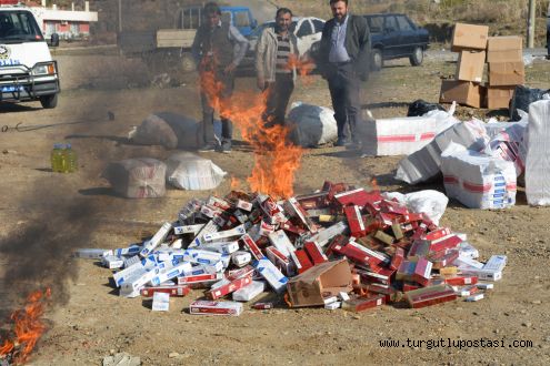 MANISA'nın Turgutlu İlçesi’nde İlçe Emniyet Müdürlüğüne bağlı Asayiş Büro Amirliği ekiplerinin şehir merkezinde muhtelif zamanlarda yaptığı operasyonlarda ele geçirilen 58 bin paket gümrük kaçağı sigara sabah saatlerinde komisyon gözetiminde yakılarak imha edildi.