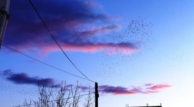 Sığırcıkların havadaki dansı görenlerin ilgisini çekiyor.