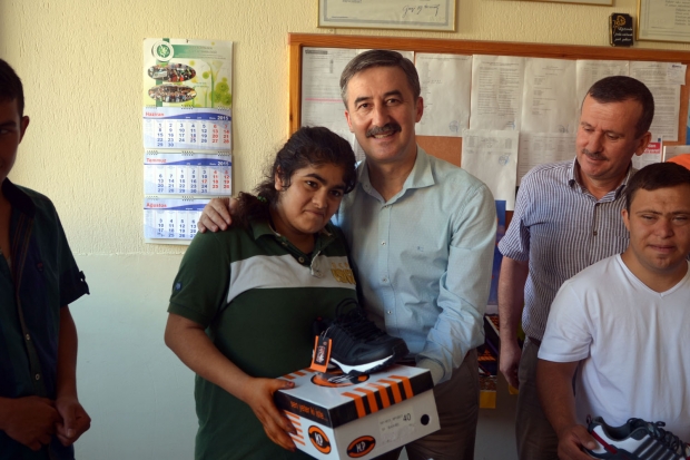 Turgutlu Belediye Başkanı Turgay Şirin, Firdevs Gürel Özel Eğitim ve Uygulama Merkezi'ni ziyaret etti. Şirin, Ege Bölgesi Özel Sporcular Olimpiyat Oyunları katılan ve madalya alan öğrencilere ayakkabı hediye etti.