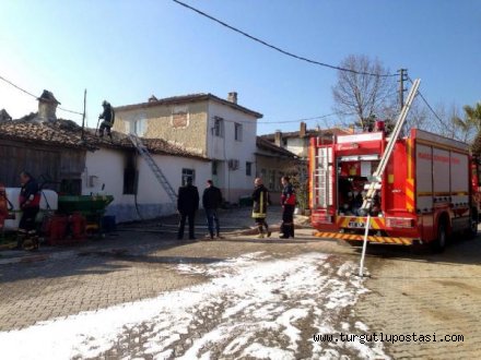 MANİSA'nın Saruhanlı İlçesi'nde tek katlı bir evde sobadan çıktığı sanılan yangın, maddi hasara yol açtı.