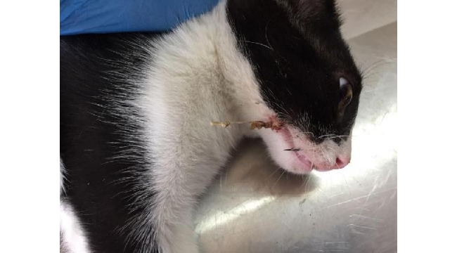 Sokak kedisinin ağzına batan olta iğnesi operasyonla çıkarıldı