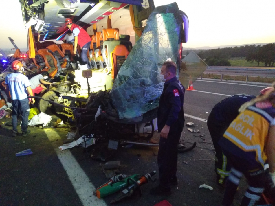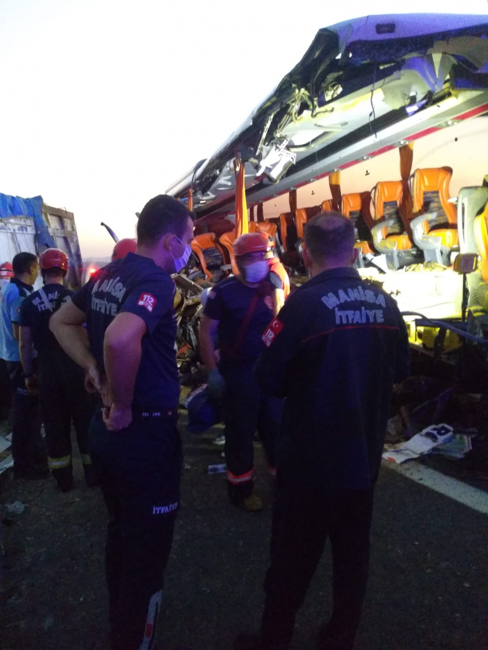 MANİSA'nın Soma ilçesinde yolcu otobüsünün TIR'a çarptığı kazada ilk belirlemelere göre 6 kişi hayatını kaybetti, 41 kişi yaralandı.