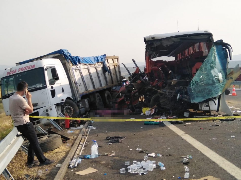 Soma'da yolcu otobüsü TIR'a çarptı: 6 ölü, 41 yaralı