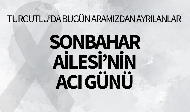 Sonbahar Ailesi’nin Acı GünüTURGUTLU İlçesi sakinlerinden merhum Muzaffer Sonbahar’ın eşi Perihan Sonbahar 85 yaşında hakkın rahmetine kavuştu.Cenazesi bugün kılınacak cenaze namazının ardından 14.30’da eski kabristanda toprağa verilecek.Yakınları: oğulları Ahmet Sonbahar, Abdullah Sonbahar Merhumeye Allah'tan rahmet, yakınlarına başsağlığı dileriz.