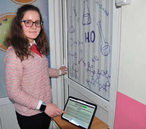MANİSA'da yetenekli öğrencilerin kurs gördüğü Bilim ve Sanat Merkezi'ndeki Fen Bilimleri öğrencisi Ceyna Alkan, öğretmeni Selman Ülker ile birlikte kapı kilit mekanizması üretti. Mekanizma, fen bilimleri dersiyle ilgili soruları doğru yanıtlayanlara kapının açılmasını sağlıyor.