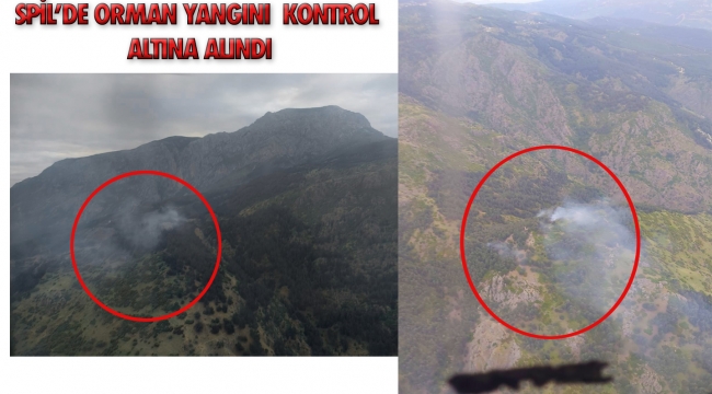 Manisa Yunusemre ilçesi Spil Dağı eteklerinde bu sabah nedeni henüz belirlenemeyen bir küçük ormanlık alanda yangın çıktı. İhbar üzerine bölgeye 1 yangın söndürme helikopteri, arazöz ve yangın müdahale personeli sevk edildi.Manisa Büyükşehir Belediyesi itfaiye ekipleri de söndürme çalışmalarına destek verdi.Yangın kısa bir süre de etrafına sıçramayacak şekilde kontrol altına alındı .Çıkan yangını soğutma sürüyor. Doğan ÇİZMECİ
