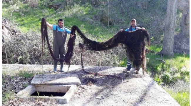 MANİSA'nın Demirci ilçesinin Küçükoba Mahallesi'nde basınç problemi yaşanan içme suyu şebekesindeki borulardan 10 metrelik ağaç kökü çıkartıldı. Suyun akışı normale dönerken, ağaç kökünü görenler büyük şaşkınlık yaşadı.Manisa Su ve Kanalizasyon İdaresi(MASKİ) Genel Müdürlüğü'nce il genelinde içme suyu hatlarında başlatılan bakım ve onarım çalışmaları sürdürülüyor. Bu kapsamda MASKİ ekipleri, bugün Demirci ilçesi Küçükoba Mahallesi'ndek hatta bakım ve onarım çalışması başlattı. Bölge sakinlerinden şebekeden suyun az geldiği yönündeki şikayetler üzerine yapılan kontrolde, su borularının içinden 10 metre uzunluğunda ağaç kökü çıkarıldı. Ağaç kökünün çıkarılmasıyla az gelen suyun akışı normale döndü. Borulardan çıkan ağaç kökü görenleri şaşırttı.Küçükoba Mahalle Muhtarı Mustafa Kaya, "Mahallemizde bulunan cazibeli hattan gelen suyumuzun azaldığını fark edince hemen MASKİ'ye bildirdik. Kaynaktan biriktirme deposuna gelen kısımda yapılan bakım sırasında boruların içinden on metre ağaç kökü çıktı. MASKİ yetkilileri, tıkanmış borularımızı yenileyerek bakımlarını yaptı. Bu sayede kesintisiz ve sağlıklı suya kavuştuk" dedi.DHA