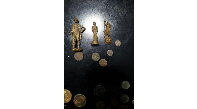 MANİSA'nın Salihli İlçesi'nde, jandarmanın düzenlediği tarihi eser operasyonunda, toplam 35 altın ve gümüş sikke ile 3 altın heykel ele geçirilirken, 4 kişi gözaltına alındı.