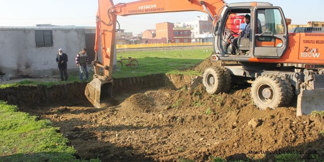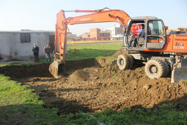 Turgutlar Mahallesi’nde inşa edilecek olan taziye evinin temelleri Belediye Fen İşleri Müdürlüğü ekipleri ve iş makineleri tarafından hazırlanıyor.