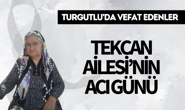Tekcan Ailesi’nin Acı GünüTurgutlu ilçesi sakinlerinden Şadiye Tekcan vefat etti. Cenazesi bugün Urganlı Çarşı Camii’nde ikindi namazına müteakip kılınacak cenaze namazından sonra Urganlı Yeni Kabristanın’da toprağa verilecek.Yakınları; Eşi merhum Tevfik Tekcan, Oğulları: Yılmaz, İbrahim Tekcan, Damatları: İbrahim Pamuk, Mutlu Kurnaz, Osman SucuMerhumeye Allah'tan rahmet, yakınlarına başsağlığı dileriz.