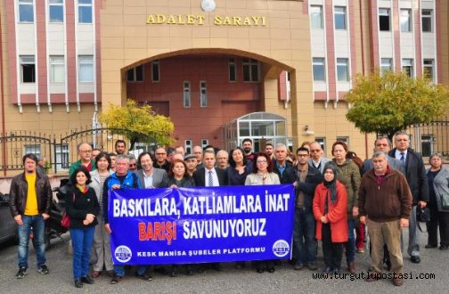 Terör örgütü propagandasından yargılanan sendika başkanına beraat MANİSA'da gerçekleştirilen 1 Eylül Dünya Barış Günü eyleminde, 'terör örgütü propagandası yapmak' suçlamasıyla hakkında açılan davada hakim karşısına çıkan Eğitim-Sen Manisa Şube Başkanı Metin Demirel, beraat etti.Kamu Emekçileri Sendikaları Konfederasyonu'na (KESK) bağlı sendikaların katılımıyla geçen 1 Eylül'de, Dünya Barış Günü'nde düzenlenen eyleme katılan Eğitim-Sen Manisa Şube Başkanı Metin Demirel hakkında 'Kanuna aykırı toplantı ve gösteri yürüyüşleri düzenleme, yönetme', 'Suç işlemeye alenen tahrik etme' ve 'Terör örgütü propagandası yapma' suçlamasıyla dava açıldı. Davanın ilk duruşması bugün Manisa Adliyesi 2'inci Ağır Ceza Mahkemesi'nde görüldü. Davanın ilk duruşmasında Demirel, beraat etti. DAVA ÖNCESİ DESTEK İÇİN BİR ARAYA GELDİLERDava öncesi Demirel'e destek için adliye önünde KESK'e bağlı çeşitli sendikaların üyeleri bir araya geldi. CHP Manisa Milletvekili Tur Yıldız Biçer, KESK Genel Eş Başkanı Şaziye Köse, Eğitim-Sen Genel Merkezi Yöneticisi Elif Çuhadar da destek verenler arasında yer aldı. Konuşma yapan KESK Genel Eş Başkanı Şaziye Köse, "Biz büyük suçlar işliyoruz. Son dönemde öyle büyük suçlar işliyoruz ki adı barış. Barış istediğimiz için Türkiye'nin her yerinde başkanlarımız, yöneticilerimiz ve üyelerimiz yargılanıyor. Aslında bugün yargının da sınandığı bir gün. Eğer barışı istemek suçsa, eğer yaşamı savunmak suçsa, eğer bedenler toprağa düşmesin demek suçsa, biz suç işlemeye devam edeceğiz" dedi. dha