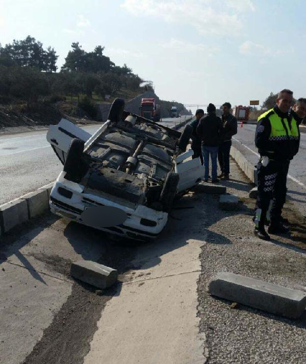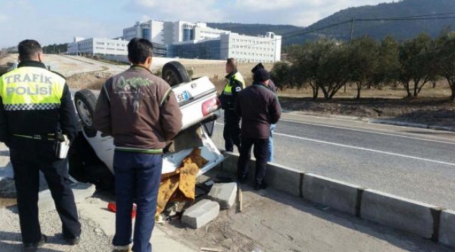 MANİSA'da takla atıp refüje düşen otomobilin sürücüsü kazayı burnu bile kanamadan atlattı.Kaza saat 15.00 sıralarında Soma Yeni Devlet Hastanesi önünde meydana geldi. İzmir yönüne giden 35 VZP ... plakalı otomobilin sürücüsü Seydi Aydın (48) direksiyon hakimiyetini kaybederek, kaldırıma çarptı. Çarpmanın etkisi ile takla atan otomobil, refüjdeki su tahliye kanalı içerisinde ters döndü. Ters dönen otomobilin içinden çıkan sürücü Seydi Aydın, kazayı burnu bile kanamadan atlattı. Olay yerine gelen polis, kazayla ilgili soruşturma başlattı. DHA