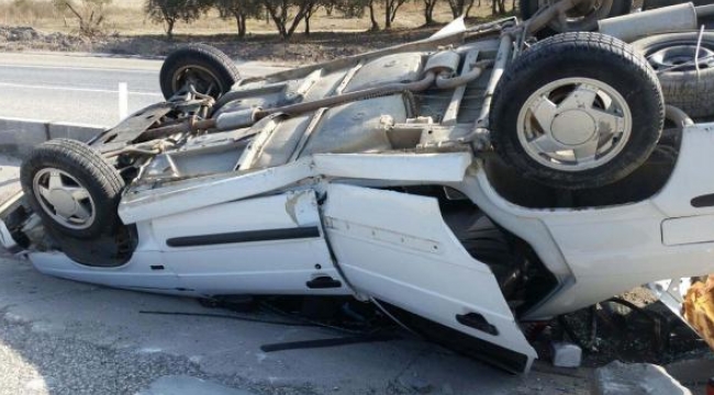 Ters Dönen Otomobilden Yara Almadan Kurtuldu
