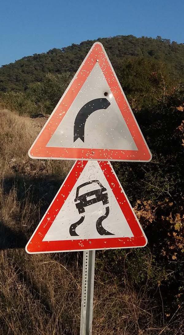 Trafik levhaları hedef tahtasına döndü