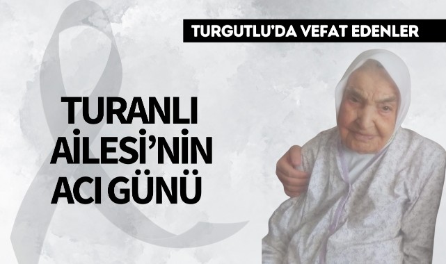 Turanlı Ailesi’nin Acı GünüTURGUTLU İlçesi sakinlerinden Hüseyin Turanlı’nın eşi Şahsine Turanlı (98) hakkın rahmetine kavuştu. Cenazesi bugün öğle namazına müteakip Pazar Camii’nde kılınacak cenaze namazının ardından eski kabristanda toprağa verilecek.Yakınları: oğulları merhum Necmettin Turanlı, Necati Turanlı, Hayati TuranlıMerhumeye Allah'tan rahmet, yakınlarına başsağlığı dileriz.