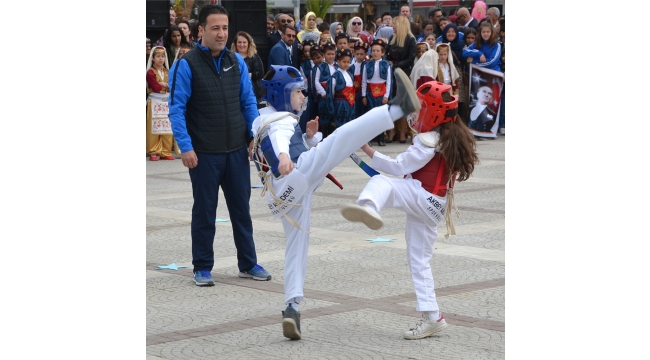 Turgutlu’da 23 Nisan coşkusuGAZİ Mustafa Kemal Atatürk’ün ilke ve fikirlerinin yaşatıldığı, milli birlik ve beraberliğimizin pekiştirildiği, öğrencilerimizin eğitim,disiplin ve görev anlayışının sergilendiği, Atatürk’ün Türk ve dünya çocuklarına hediye ettiği ilk ve tek bayram olan 23 Nisan Ulusal Egemenlik ve Çocuk Bayramı’nın 99. yılı bugün tüm yurtta olduğu gibi Turgutlu’da da görkemli bir törenle kutlandı. 15 Temmuz Demokrasi Şehitleri Alanı’ndaki törene Turgutlu Kaymakamı Uğur Turan, Garnizon Komutanı Per. Alb. Kenan Peşternik, Turgutlu Belediye Başkanı Çetin Akın, Cumhuriyet Başsavcısı Abdusselam Esen, Jandarma Komutanı Binbaşı Muhammet Evren, İlçe Emniyet Müdürü Volkan Parıldar, Manisa CBÜ Hasan Ferdi Turgutlu Teknoloji Fakültesi Dekanı Prof. Dr. Ahmet Türk, daire müdürleri, siyasi parti temsilcileri, sivil toplum kuruluşları ve vatandaşlar katıldılar. Saat 10.00’da İlçe Milli Eğitim Müdürü Mehmet Ölmez’in anıta çelenk koymasıyla başlayan törende saygı duruşu ve İstiklal Marşının birlikte söylenmesinin ardından şanlı bayrağımız göndere çekildi.Günün anlam ve önemini belirten konuşmayı yapan İlçe Milli Eğitim Müdürü Mehmet Ölmez konuşmasında: “Bugün Türk Milleti’nin iradesini temsil eden Türkiye Büyük Millet Meclisi’nin açıldığı ve Türk halkının var olma – yok olma savaşları içinde egemenliğini ilan ettiği gündür. Gazi Mustafa Kemal Atatürk 23 Nisan 1924’de 23 Nisan Gününün bayram olarak kutlanmasına karar vermişti. Bu tarihten 5 yıl sonra 23 Nisan 1929’da Atatürk bu bayramı çocuklara armağan etmiştir ve 23 Nisan ilk defa 1929 yılında çocuk bayramı olarak kutlanmaya başlanmıştır. Çok kıymetli misafirler Büyük Lider Atatürk’ün düşüncesinde çocuklar milletin geleceğidir. Onlara duyduğu sarsılmaz güvenin ve büyük sevginin ifadesi olarak, milli bayramımız olan 23 Nisan’ı çocuklara armağan etmiştir. Demokrası tarihimizin gurur dolu sayfalarının yeni nesillerce öğrenilmesi ve Türk devletinin devamını emanet edeceğimiz Demaokrasi ve Cumhuriyet bekçilerinin bu bilinçle yetişmesi amacıyla 23 Nisanlar önemli birer vesiledir.Sevgili çocuklar bugün sizin bayramınız sevinin mutlu olun. Bayram yapın. Yüzünüzden tebessüm, gözlerinizden huzur ışığı, gönlünüzdende hayatınızdan da mutluluk asla eksik olmasın. Sizler bugünün çocukları yarının yetişkinlerisiniz. Sözlerime Atatürk’ün sizlere ettiği şu hitabeyle son vermek istiyorum; “Küçük Hanımlar, Küçük Beyler sizler hepiniz geleceğin bir gülü, yıldızı, bir mutluluk parıltısısınız. Memleketi asıl aydınlağa boğacak asıl sizsiniz. Kendinizi ne kadar mühim, kıymetli olduğunuzu düşünerek ona göre çalışınız. Sizlerden çok şeyler bekliyoruz’’ bu duygu ve düşüncelerle sevginin kardeşliğin hoşgörünün ve barışın hakim olduğu bir dünyada el ele yaşamak ümidiyle; Ulusal Egemenlik ve Çocuk Bayramı hepinize kutlu olsun diyor. Sizleri saygı ve muhabbetle selamlıyorum.’’ dedi. Daha sonra ortaokullar adına Mert Demir, ‘Egemenlik Tadı’ isimli şiirini okudu.Minik öğrenciler daha sonra ‘Adım adım Anadolu’ gösterisini sunarak alkışlandılar. İlkokullar adına Hamdi Niyazi ‘Bayrak’ şiirini okudu.Turgutlu Halk Eğitim Merkezi 10-13 yaş grubu kursiyerleri tekvando kick boks gösterileri büyük ilgi gördü ve alkışlandı. Melodika grubu öğrencilerinin müzik gösterisi büyük ilgi toplarken, Arif Canpoyraz ilköğretim okulu öğrencilerinin Fethiye yöresine ait halk oyunları gösterisi ayakta alkışlandı.Öğrenciler arasında yumurta taşıma, balon patlatma, sandalye kapmaca ve top sektirme yarışı yapıldı. Dereceye giren öğrencilere ödülleri dağıtıldı. Kutlamanın sonunda 20 kişilik grup step aerobik gösterilerinden sonra 10. Yıl Marşı eşliğinde final tablosu yapıldı. Büyük alkışlar ile tören son buldu. Tören sonunda Kaymakam Uğur Turan ve protokol üyeleri, kutlamanın güzel bir şekilde yapılmasında emeğe geçenleri tebrik etti. Tuncel YILMAZ /