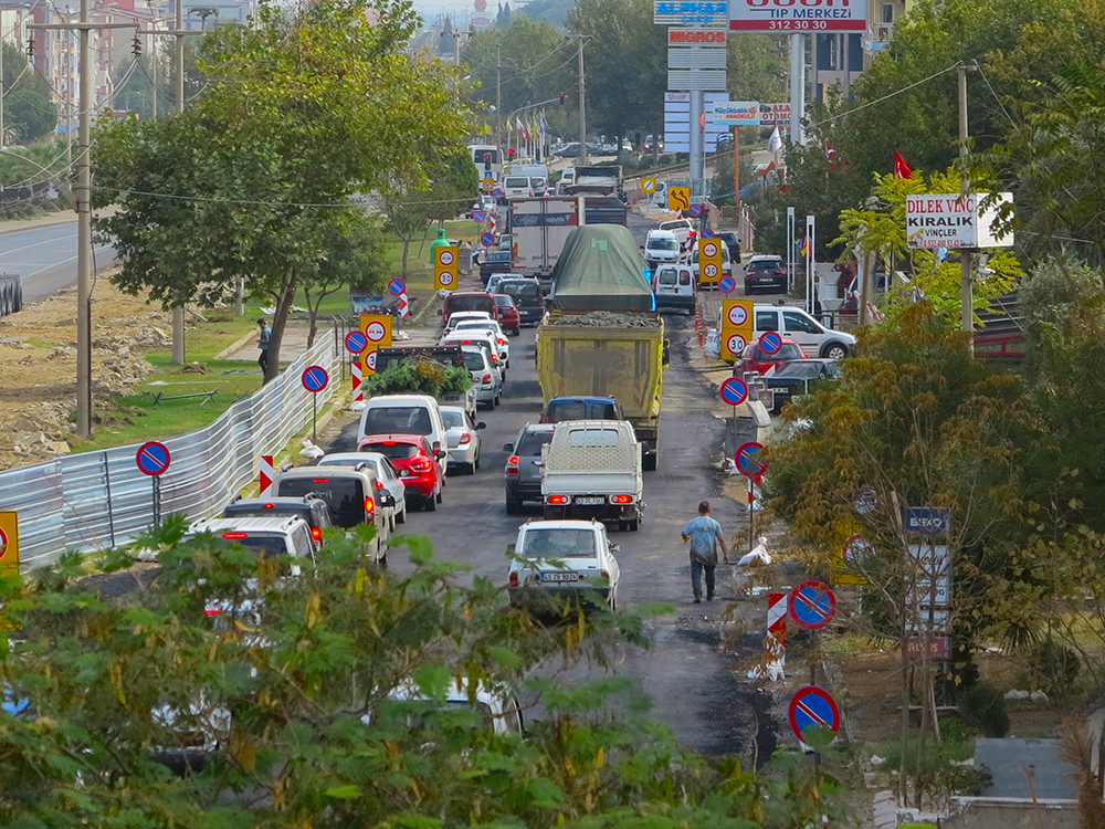 Ankara yönüne gideceklerin dikkatineServis yolu hizmete girdiMANİSA Büyükşehir Belediyesi tarafından yapımına başlanan Manisa Turgutlu Köprülü Kavşak Projesi'nde yeni servis yolu bu sabah hizmete açıldı. Bu kapsamda E 96 Karayolu 'n da İzmir’den Ankara yönüne gidecek araçlar için açılan servis yolu dün asfaltlandı. Sabahleyin ise İzmir 'den Ankara yönüne gidecek araçlar Turgutlu girişinde üst geçittin yanı başından başlayan servis yolundan devam edip eski garaj kavşağına ulaşıyor.Servis yolu başlangıcında elindeki bayraklı görevli araç sürücülerine uyararak yol gösteriyor. Yaklaşık 500 metre uzunluğundaki servis yolunda park eden araçlar nedeniyle zaman zaman trafik sıkışıklığı yaşanmakta. Turgutlu Emniyet Müdürlüğü Trafik ekipleri devriye gezerek sorunları aşmaya çalışıyor.Turgutlu tarihinde bir ilk yaşanarak İzmir Ankara Karayolunun bir kısmı kapanarak yeni proje için star aldı.Olay yerine gelen Turgutlu Belediye Başkanı Turgay Şirin, çalışmaları inceledi. Şirin köprülü kavşak hayata geçtiğinde hem sürücüler hem de vatandaşlar rahat edecek.” diye konuştu. Doğan ÇİZMECİ