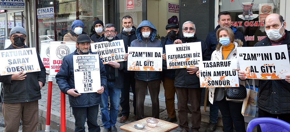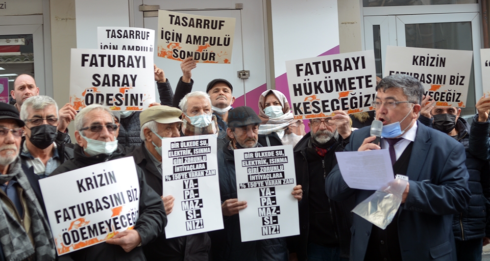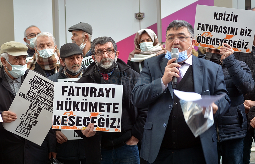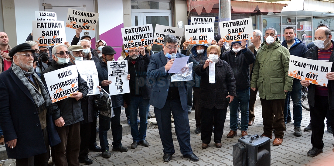 CHP İlçe Başkanı Hüseyin Oğuz yaptığı açıklamada, “Bugün burada elektrik, doğalgaz ve akaryakıt faturalarına yansıtılan fahiş zamları protesto etmek için toplandık. AKP ve MHP'nin başını çektiği Cumhur ittifakı gözünü vatandaşın cebine dikmiş durumda. Vatandaşı enflasyona ezdirmediğini, gerektiği kadar zam yaptıklarını dile getiren iktidar sahipleri ne yazık ki sokaktaki ve mutfaktaki yangını fark edemiyor. Elektrik faturalarındaki TRT payını kaldırdık diyen iktidar sahipleri faturalara yansıtılan katlamalı zamları görmezden geliyor, vatandaşın sesine kulağını tıkıyor. Elektrik dağıtım şirketlerini zengin etmeye yemin etmiş gibi davranan AKP iktidarı kış gününde vatandaşın cebindeki 3 kuruş parayı da sermaye gruplarına aktarmaktan geri durmuyor. Maaşlara yüzde 30 yüzde 40 zam yaptık diye övünenler elektriğe bir gecede yapılan 130'a varan zamları normal karşılıyor. İktidarın uyguladığı bu politika ülkeyi uçuruma sürükleyen politikadır. Böylesi bir ortamdan ne vatandaş evindeki ışığını rahatça açabiliyor ne de sanayiciler üretimlerine devam edebiliyor.