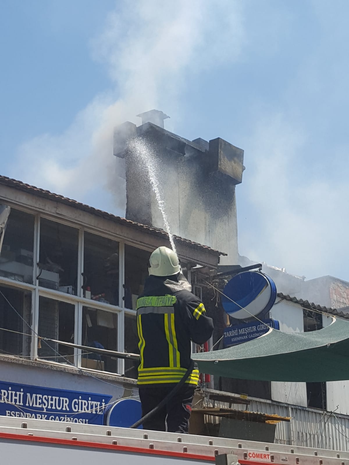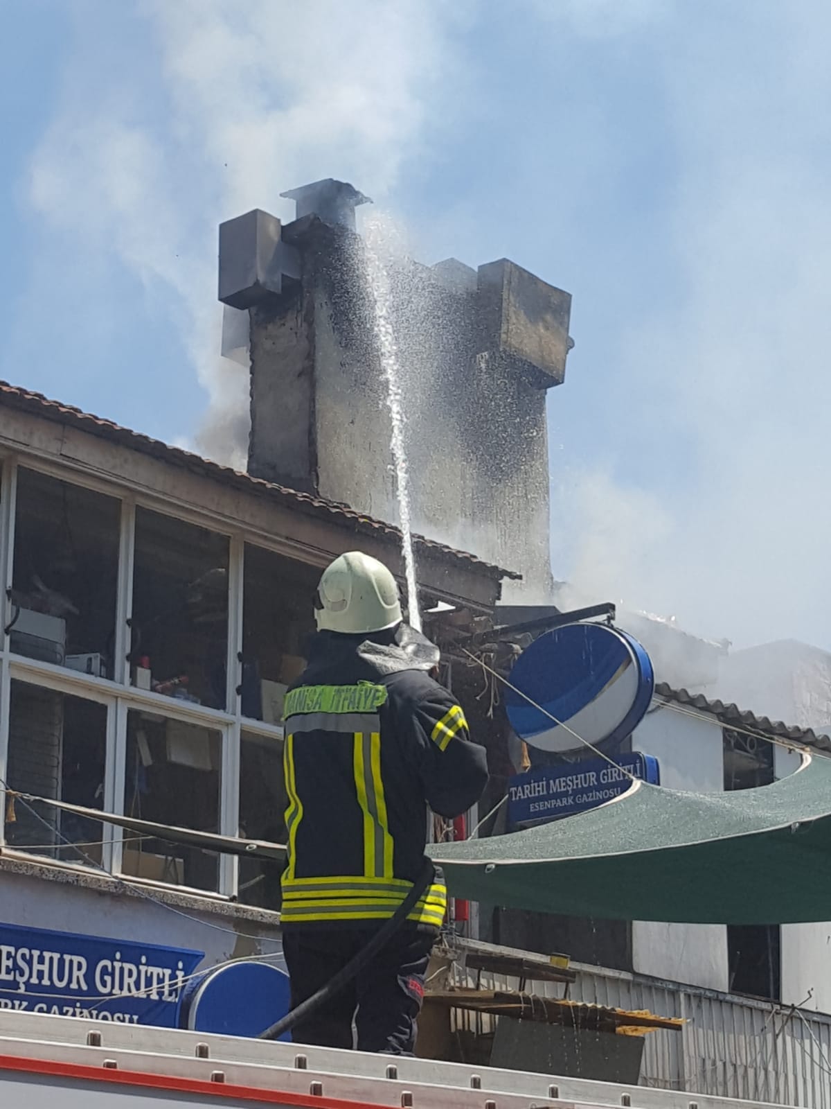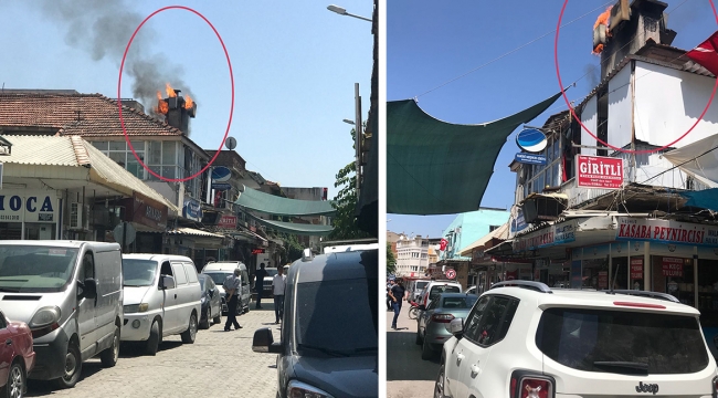 Turgutlu 'da işyerinde meydana gelen baca yangını panik yarattı VİDEO