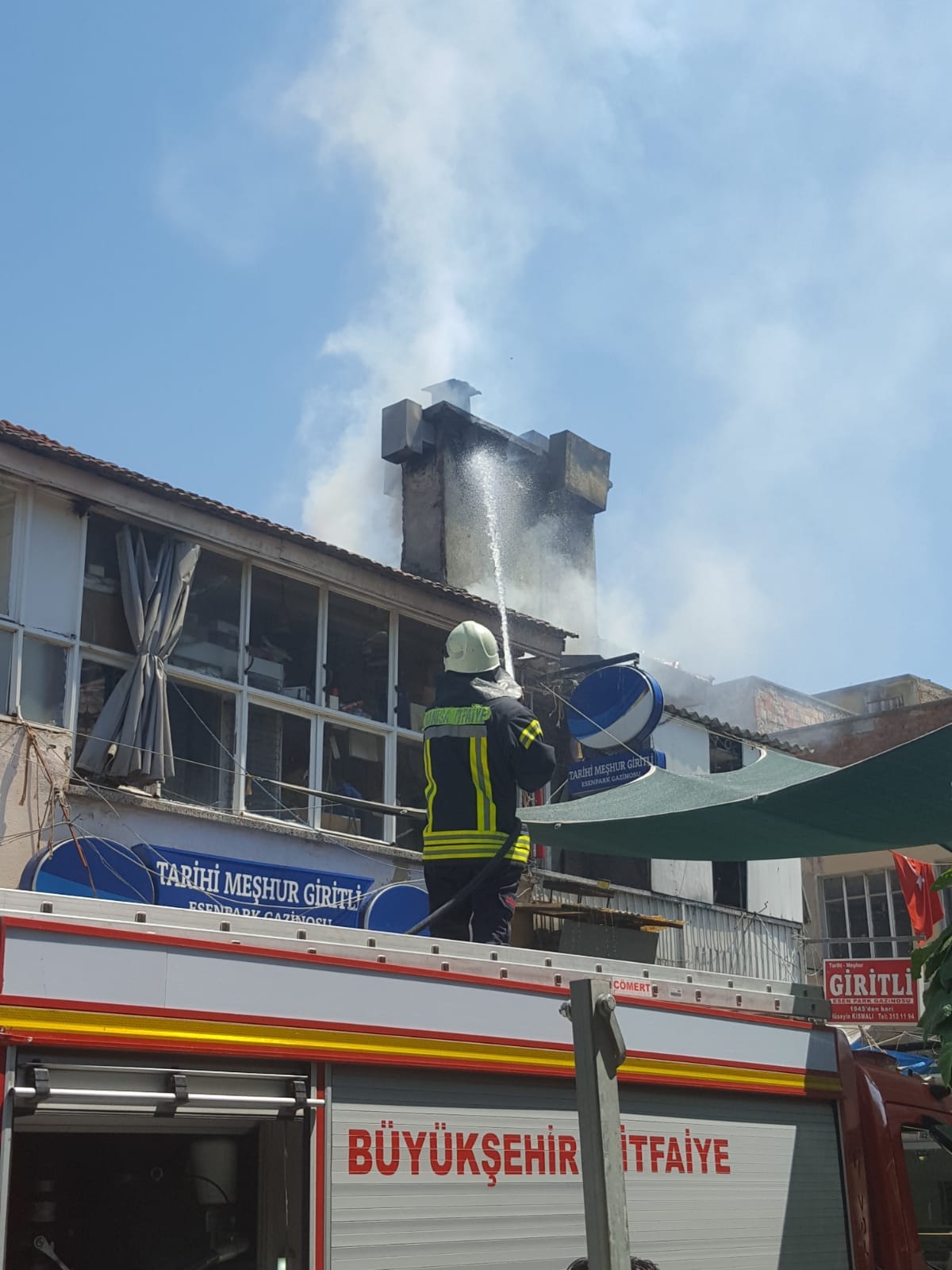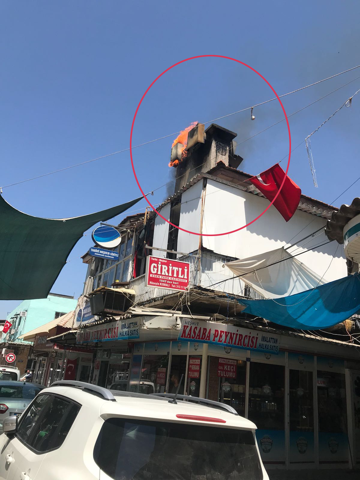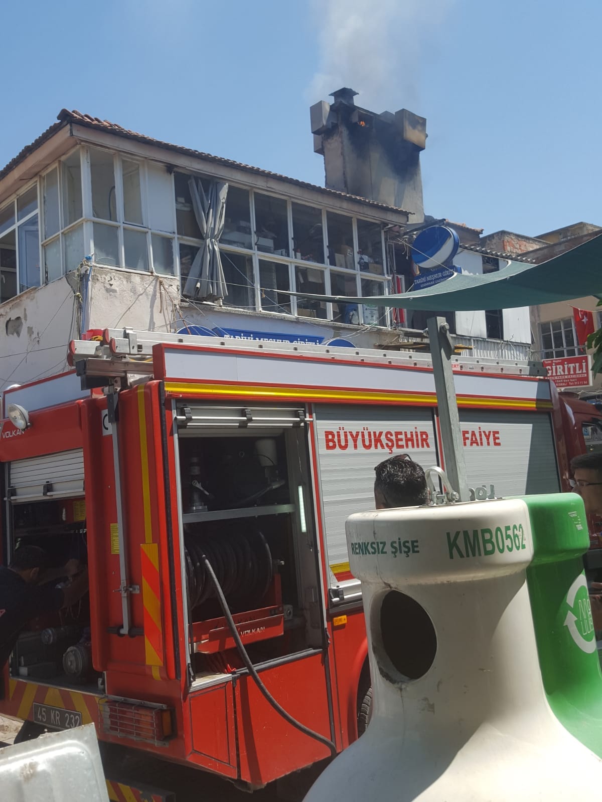 Turgutlu ‘da işyerinde meydana gelen baca yangını panik yarattı MANİSA’nın Turgutlu İlçesi’nde G. K. ( 62) ’ya ait meyhanede çıkan baca yangını panik yarattı. Alevlerin bir metre ulaştığı baca yangını itfaiyenin yoğun çalışması sonucu diğer işyerlerine sıçramadan kontrol altına alındı.Turgutlu’nun en işlek Kasaplar Çarsısı’nda bulunan tarihi bir meyhanede bu gün saat 15.00 sıralarında bacada biriken yağların, alev almasıyla yangın çıktı. Çevredekilerin , haber vermesi üzerine olay yerine gelen Manisa Büyükşehir Belediyesi Turgutlu İtfaiye Amirliğine bağlı ekipler yangına müdahale ederek kontrol altına aldı. Diğer işyerlerine sıçramayan yangında yaklaşık beş bin liralık maddi hasar meydana geldi. Çevre sakinlerinden İbrahim Özkan Tamer isimli vatandaş: “ Yolda yürüyordum meyhanedeki bacadan dumanlar yoğun olarak artmaya başladı. Daha sonra alevler yükseldi. Yaklaşık bir ile 2 metreyi bulan alevler işyerindeki çalışan ve itfaiye görevlilerince kontrol altına alındı. Bu işyerinin işleri çok yoğun. Bacada biriken yağlar , kurumlar işyerindeki mangalın tekrar yakılmasıyla tutuştu. Eğer gece yarısı bu olsaydı felaket olabilirdi. Kanaat’ıma göre bacalar sık sık temizlenmedi diye düşünüyorum” Doğan ÇİZMECİ