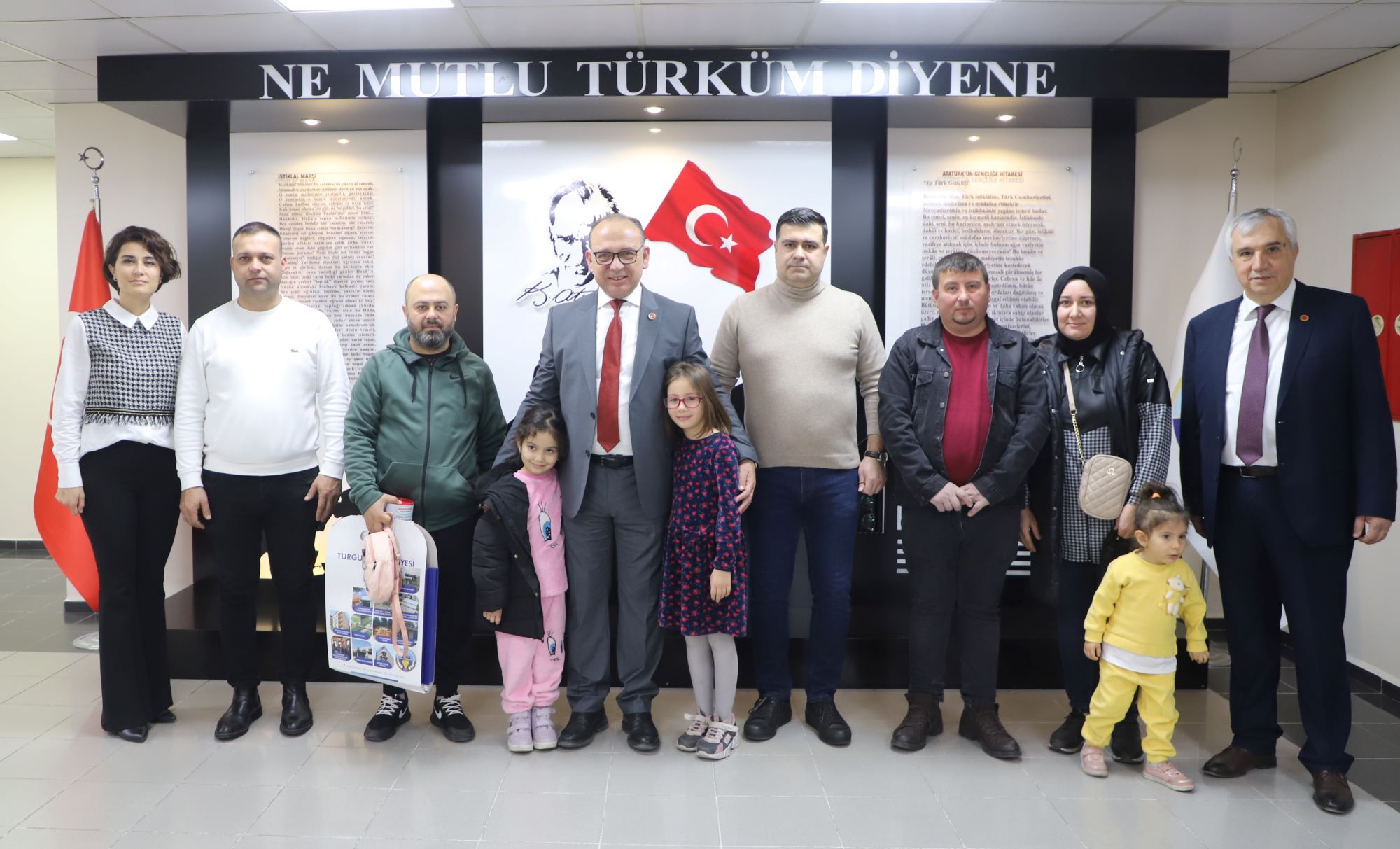 Turgutlu Belediye Başkanı Çetin Akın, Başkan Yardımcıları Fırat Honaz, Ahmet Daşkan, Evren Erbaş ile birlikte Ayşe Betül ile Yüsra’ya Nutuk, tablet ve boyama setinden oluşan paketi hediye etti.