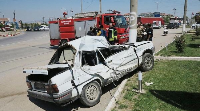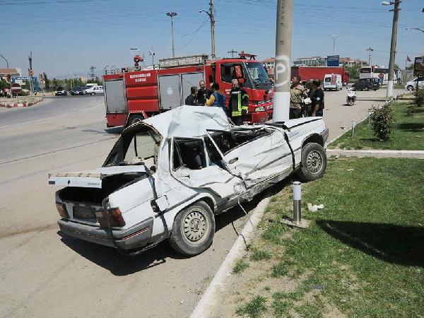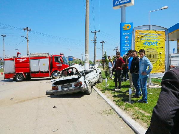 MANİSA’nın Turgutlu İlçesi Jandarma Kavşağı’nda meydana gelen trafik kazasında hurdaya dönen otomobilden sürücü hafif yaralı kurtuldu.Olay bugün saat 13.30 sıralarında İzmir Ankara Karayolu Turgutlu çıkışındaki Jandarma Kavşağı’nda meydana geldi.İddiaya göre Kemalpaşa yönünden Turgutlu’ya gelen Mustafa K. (44) yönetimindeki 45 PD ... plakalı kamyon ,kavşakta kontrolsüz yola çıkan Mustafa E.. yönetimindeki 45 TC ... plakalı otomobille çarpıştı. Çarpma etkisiyle akordiyona dönen otomobil daha sonra akaryakıt istasyonu önündeki yüksek gerilim taşıyan elektrik direğine çarptı. Kazayı görenlerin durumu bildirmesi üzerine gelen Manisa Büyükşehir Turgutlu İtfaiyesi AKS görevleri ve sağlık ekipleri sürücü Mustafa E.yi otomobil içinden çıkartarak Turgutlu Devlet Hastanesi’ne kaldırıldı. Yaralı sürücü E.’nin hayati tehlikesi bulunmadığı bildirildi. Kamyon sürücü Mustafa K.: “Ben Kemalpaşa yönünden geliyordum. Fren sıkmama karşın önümdeki kavşaktan gelen otomobil sürücü ‘herhalde akaryakıt istasyonuna girerim’ diye düşünde ama bana çarptı. “dedi. DOĞAN ÇİZMECİ