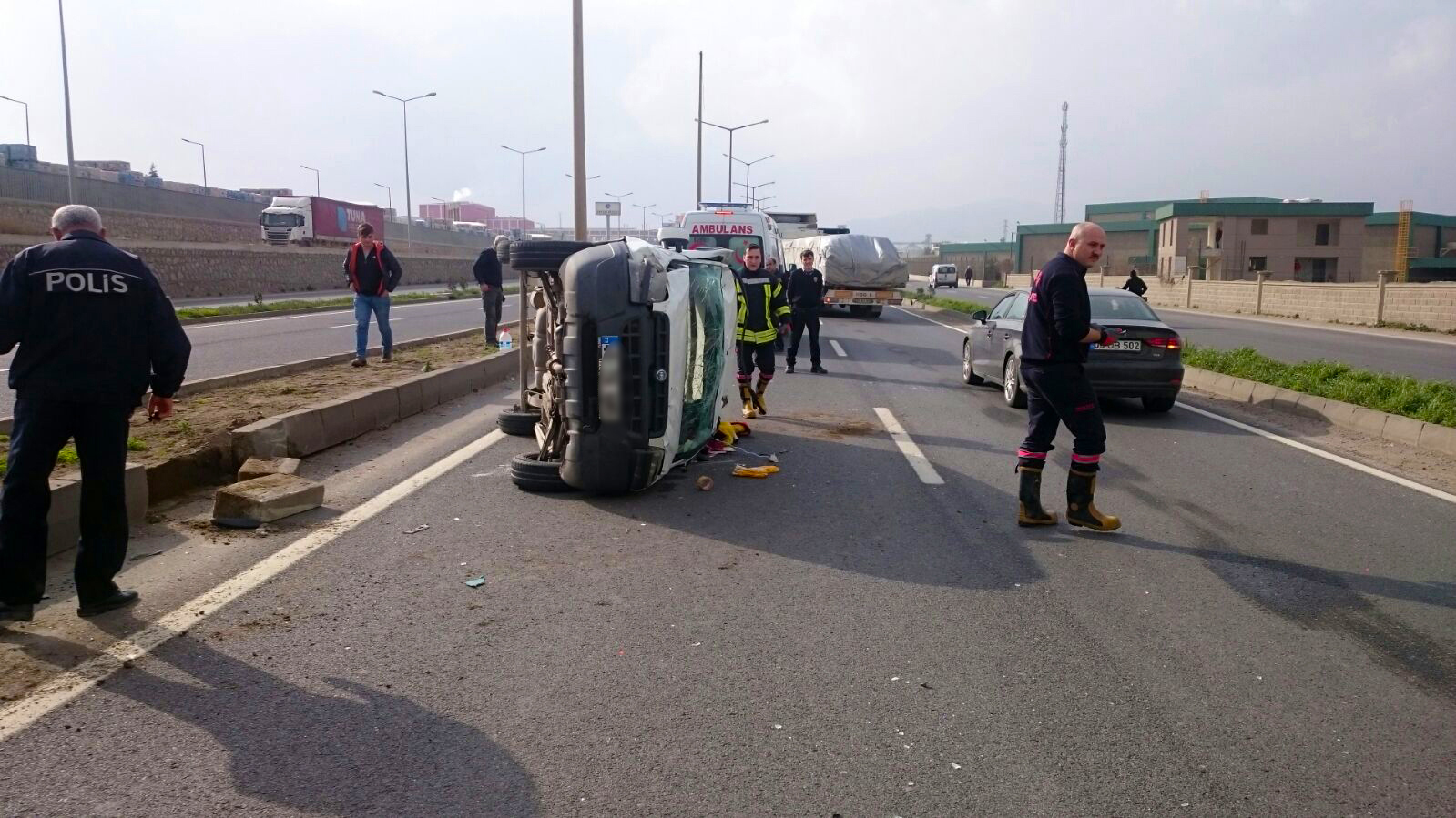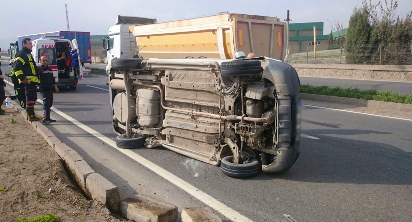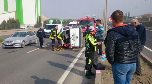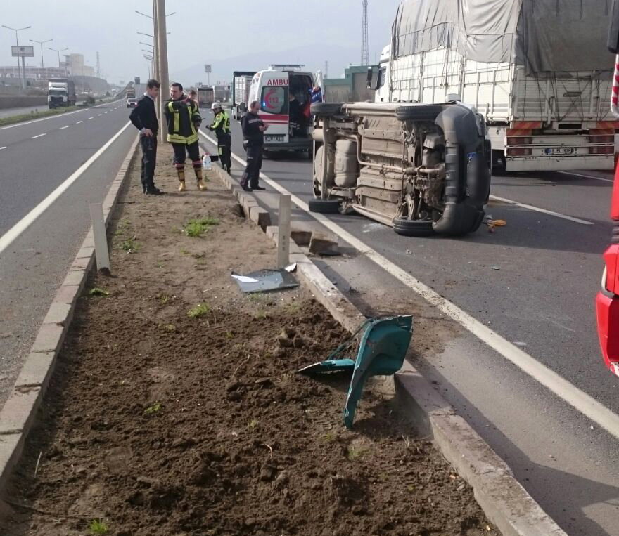 Kaza, bugün saat 15.00 sıralarında, Turgutlu çıkışındaki bir tavuk fabrikası önünde meydana geldi. Turgutlu'dan İzmir yönüne giden Halil İ. (55) kullandığı 61 K .... plakalı TIR'a aynı yöne giden Nezir T.'in (28) kullandığı 45 TG 6... plakalı hafif ticari araç yandan çarptı. T. çarpmanın şiddetiyle direksiyon kontrolünü yitirdi. Savrulan araç, devrildi. Araçta sıkışan T. yoldan geçen diğer araç sürücülerinin haber vermesi üzerine gelen itfaiye, polis ve 112 Acil Servis ekibi tarafından güçlükle kurtarılıp, Turgutlu Devlet Hastanesi'ne kaldırıldı. Tedaviye alınan T.'in sağlık durumunu iyi olduğu, hayati tehlikesinin bulunmadığı bildirildi. TIR şoförü İ.'in ifadesine başvuran polis, kazayla ilgili soruşturma başlattı.
