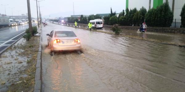MANİSA'nın Turgutlu ilçesinde, aniden bastıran ve 30 dakika süren sağanak, nedeniyle meydana gelen selde Turgutlu- Manisa ve İzmir- Ankara yolunun Turgutlu'dan geçen bazı kesimleri trafiğe kapandı. Onlarca araç yolda mahsur kalırken, yağmurun durmasıyla sel suları çekildi, Belediye ekipleri kepçelerle suyun tahliyesini sağladı.