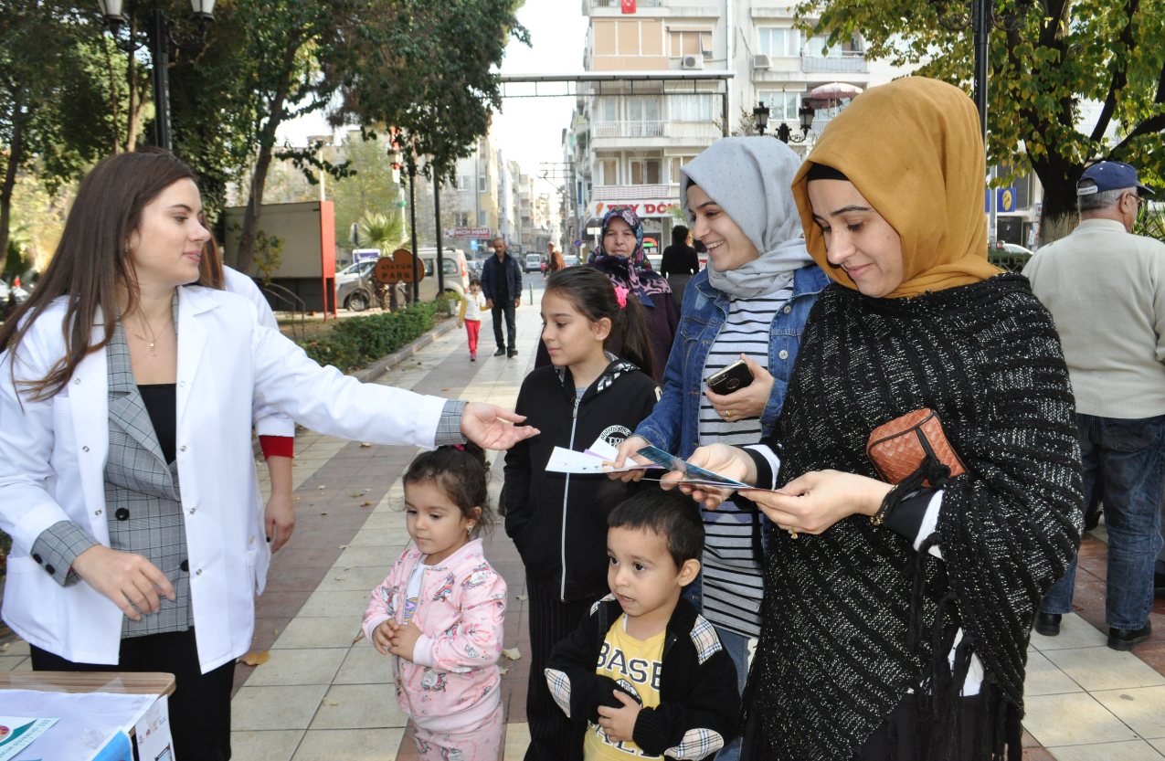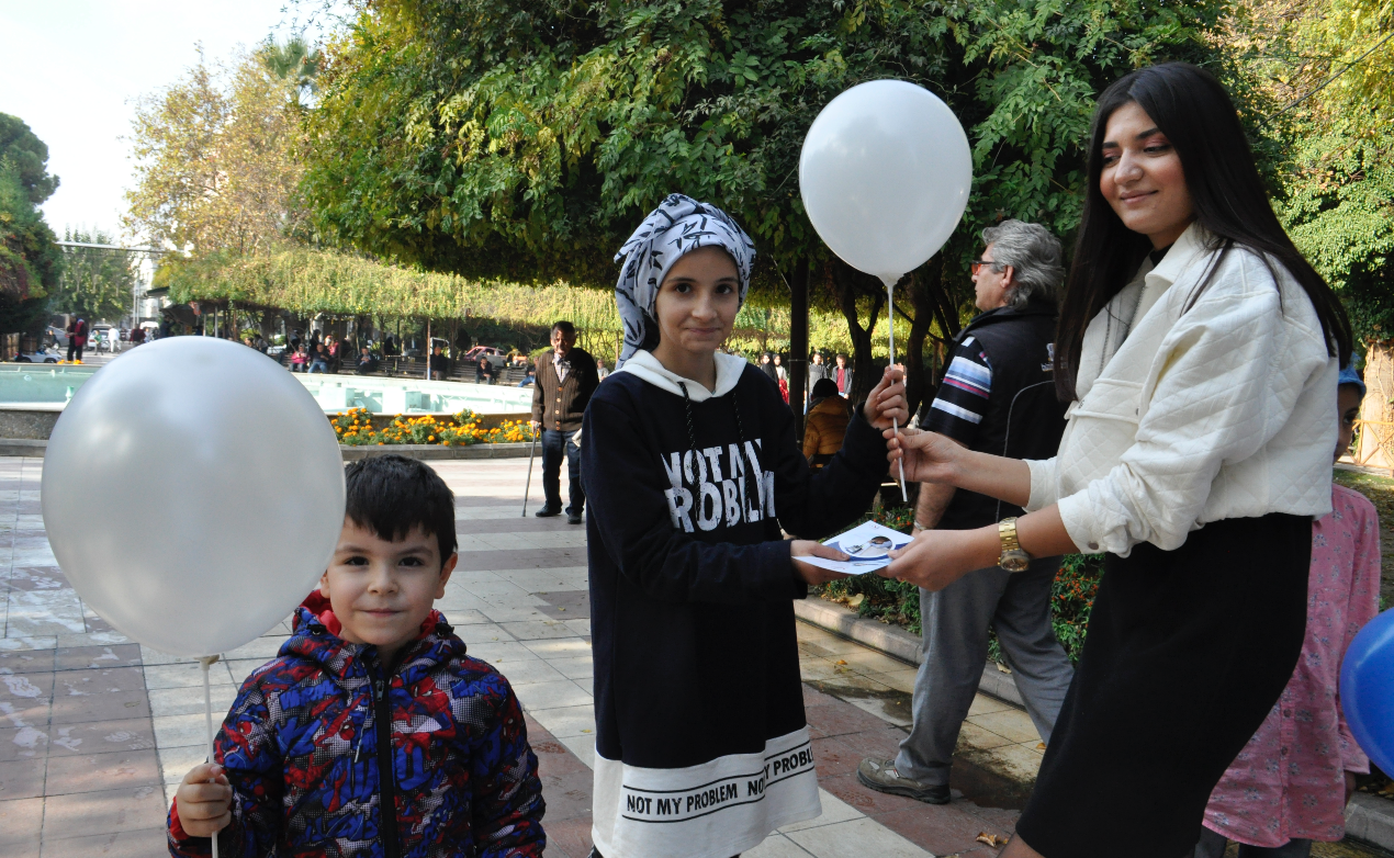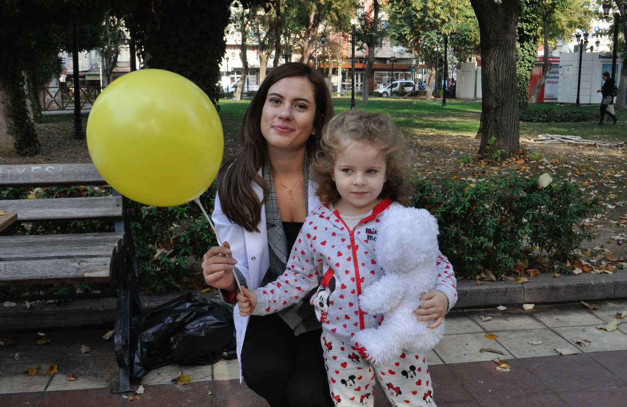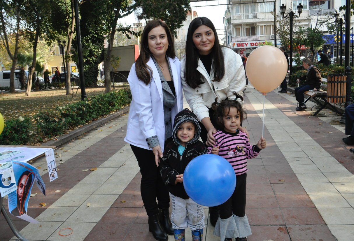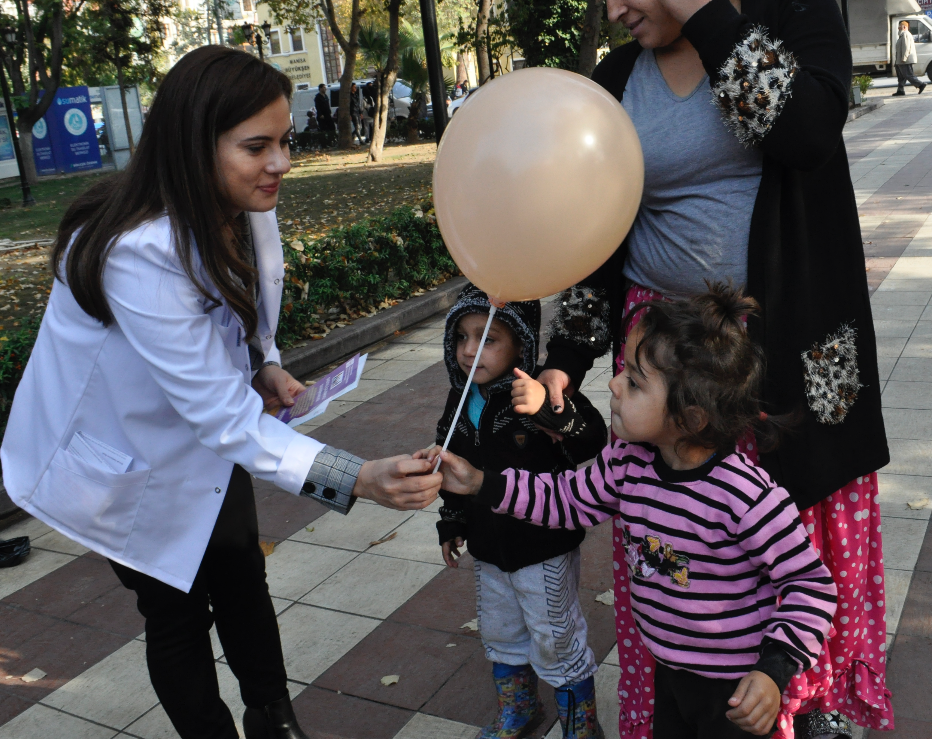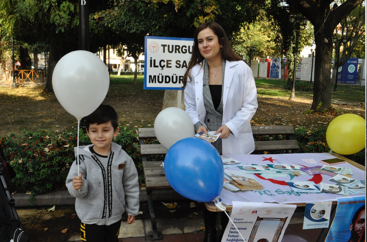 Turgutlu İlçe Sağlık Müdürlüğü personelleri Çocuk Gelişim Uzmanı Elif FAKIOĞLU, Sosyal Hizmet Uzmanı Ezgi KÖYBULAN Orta parkta çocuklarla ve ebeveynleriyle buluştu. Ortaparkta kurulan stant çalışmasında uzmanlar, aileleri Çocuk Hakları Sözleşmesi konusunda bilgilendirerek, konu ile ilgili broşür dağıttılar. Çocuklara hediye edilen balonlar renkli görüntülere sahne oldu. Dünya Çocuk Hakları Günü ile ilgili, Çocuk Gelişim Uzmanı Elif FAKIOĞLU ‘‘ Tüm çocukların evrensel hakkı olan Çocuk Hakları Sözleşmesi varlığı ile din, dil, ırk, cinsiyet ve inanç ayırt etmeden tüm çocukları koruma altına almaktadır. Her çocuk doğuştan eğitim, sağlık, yaşama, barınma, cinsel ve psikolojik sömürüye karşı koruma altındadır. Çocuk Hakları Sözleşmesi 4 Temel başlık altında toplanmıştır. Bunlardan ilki: Çocuklar arasında hiçbir şekilde ayrım yapmamaktır. İkinci ilkede her durumda öncelikli olarak çocuğun yararı gözetilir. Üçüncü ilke tüm çocukların yaşama ve gelişme hakkı vardır. Ve son olarak dördüncü ilke ise her çocuğun görüşlerini özgürce ifade etme hakkı vardır. UNİCEF gibi birçok Uluslar arası sivil toplum kuruluşları Çocuk Hakları konusunda çalışmalarına devam etmektedir. Dedi. Sosyal Hizmet Uzmanı Ezgi KÖYBULAN ise; ‘‘Çocuk Hakları Sözleşmesi dünyada en çok ülke tarafından imzalanan sözleşmedir. 193 ülke tarafından imzalanmıştır. Ülkemiz bu sözleşmeyi 1990 yılında imzalamış 1995 yılında onaylamıştır. Ülkemiz bu sözleşmeyi onaylayarak ülkedeki tüm çocukların haklarını koruma altına almıştır. Çocuk Hakları Sözleşmesinin bazı maddelerinden bahsetmek gerekirse, Her birey 18 yaşına kadar çocuk olarak kabul edilir. Çocuklara verilen isim yani kimlik ve aile bağları korunmalıdır. Hiç kimse çocukların onurunu kıramaz, onları küçük düşüremez. Engeli olan çocukların korunma, saygı görme ve her türlü yardım hakkı vardır. Çocuk haklarına uygun olarak kreşler, yurtlar, hastaneler, okullar vs. oluşturulur ve bunlar düzenli olarak kontrol edilir. Her çocuğun okula gitme,oyun oynama ve sosyal aktivitelere katılma hakkı vardır. Bizler Turgutlu İlçe Sağlık Müdürlüğü-Sağlıklı Hayat Merkezi danışmanları olarak 0-18 yaş arası çocuğu olan ebeveynleri Çocuk Hakları Sözleşmesinin maddelerinden bahsederek konuya ışık tuttuk.’’ Dedi.