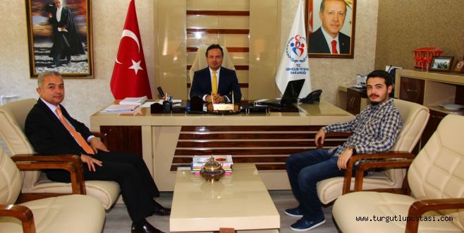 TURGUTLU KAYMAKAMI UĞUR TURAN’DAN ZİYARETGençlik Hizmetleri ve Spor İl Müdürü Makamında ziyaret eden Turgutlu Kaymakamı Uğur Turan Gençlik Hizmetleri ve Spor İl Müdürlüğü’nün Turgutlu’da yapmış olduğu çalışmaları Taktir Ettiğini belirterek İl Müdürü Dr. Savaş Duman’ı Tebrik etti.Turgutlu Kaymakamı Uğur Turan ve oğlu Mehmet Akif Turan, Manisa Gençlik Hizmetleri ve Spor İl Müdürü Dr. Savaş Duman’ı Makamında ziyaret etti. Gençlik Hizmetleri ve Spor İl Müdürü Dr. Savaş Duman misafirlerini karşıladı. Turgutlu Kaymakamı Turan Ziyarette yaptığı kısa konuşmada”Gençlik Hizmetleri Spor İl Müdürü Dr. Savaş Duman’ı oğlum Mehmet Akif’le birlikte ziyarette bulunduk. İlçemizde hizmete giren Yıldırım Beyazıt Spor Salonu ve Gençlik Merkezi hakkında bilgi alışverişinde bulunarak, yeni yapılacak olan projeler hakkında bilgiler aldık. Gençlik Hizmetleri ve Spor İl Müdürümüzle çok iyi ilişkiler kurduk. Turgutluya yapmış oldukları çalışmalar için ayrıca bizlere gösterdikleri Misafirperverlik içinde teşekkür ederim”.DediNAZİK ZİYARETLERİ İÇİN TEŞEKKÜR EDERİMManisa Gençlik Hizmetleri ve Spor İl Müdürü Dr. Savaş DUMAN Turgutlu Kaymakamı Uğur Turan’ın ziyaretinden duyduğu memnuniyeti ifade eden Duman”Kaymakamımızın bizleri ziyaretinden oldukça mutlu olduk. Turgutlumuza yapmış ve yapacağımız çalışmalar hakkında istişarelerde bulunduk. Kaymakamımızın Oğlu Mehmet Akif’le bu ziyaret’te tanıştık, nazik ziyaretleri için Teşekkür ederim diye konuştu.ÖZEL