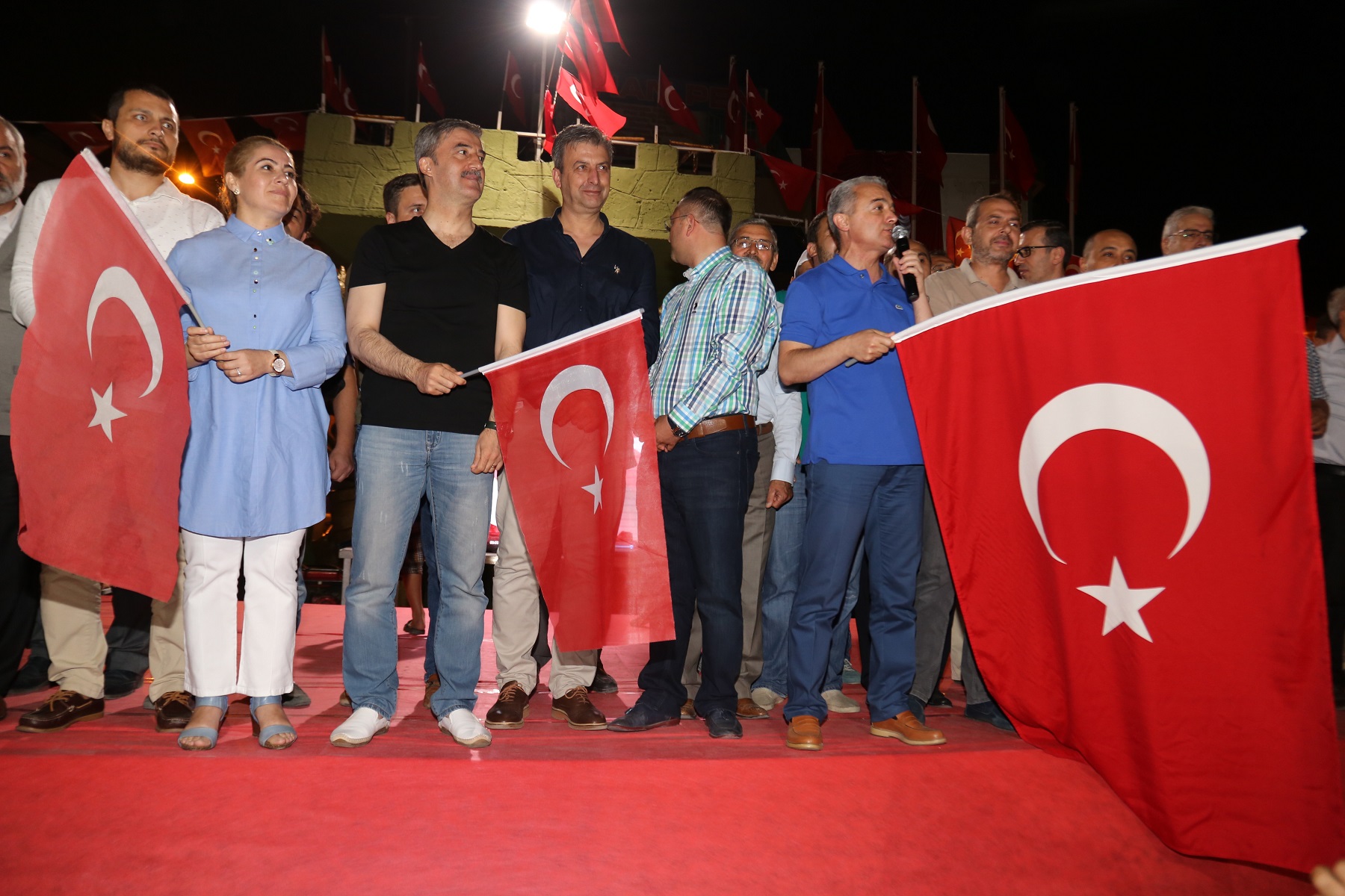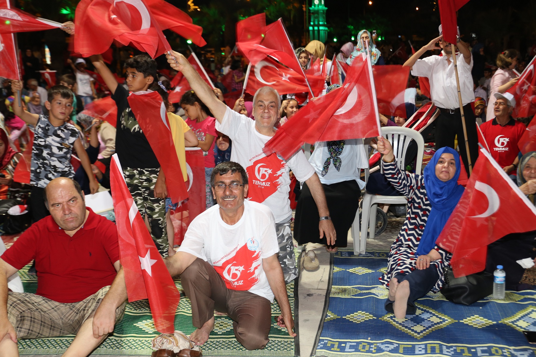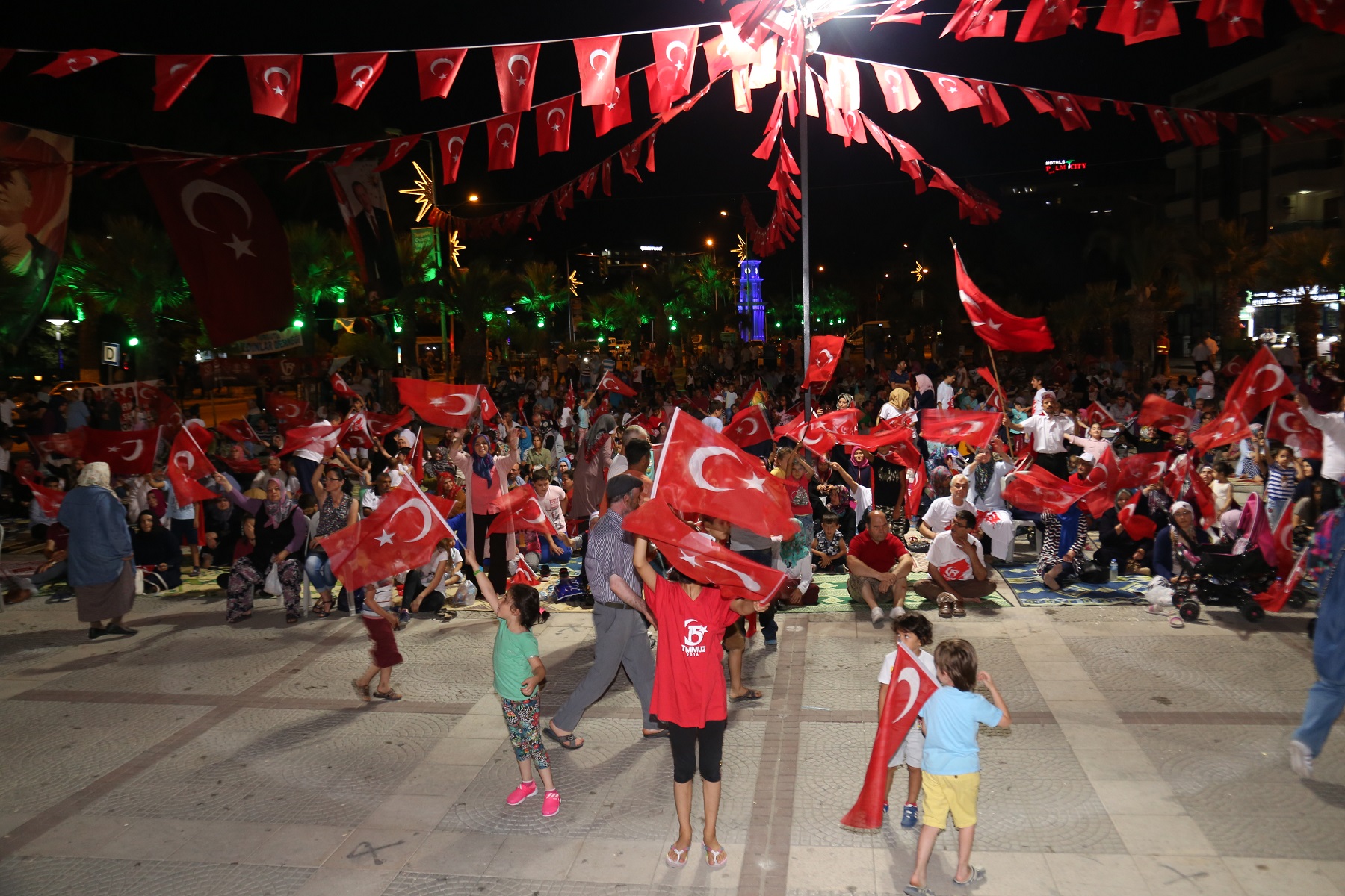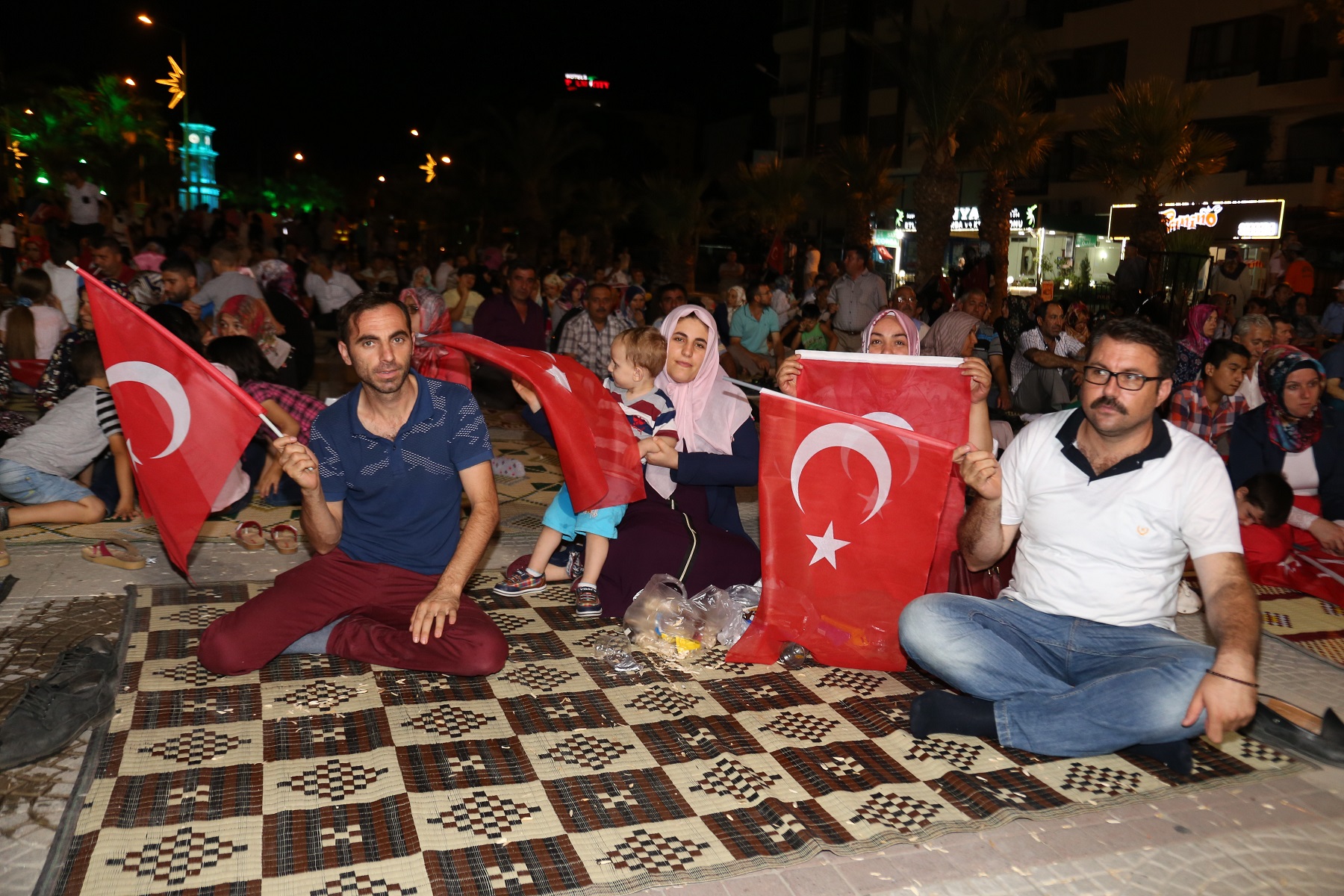 Tüm Türkiye’de aynı anda başlayan Demokrasi nöbetleri Turgutlu’da da devam etti. Nöbetin ikinci gününde de 15 Temmuz Demokrasi Şehitleri Alanın’da bir araya gelen vatandaşlar saat 24.00’a kadar ellerinde Türk Bayraklarıyla nöbet tuttu, Belediye Başkanı Turgay Şirin’in de yer aldığı alanda birlik ve beraberlik mesajları verildi.