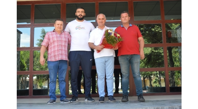 Turgutlu’nun gururu Saltık’tan Ticaret Borsasına ziyaret1 - 7 Temmuz 2019 tarihleri arasında Edirne Sarayiçi Er Meydanında gerçekleşen 658. Geleneksel Kırkpınar Yağlı Güreşleri'nde Başpehlivanlık boyuna erişen Turgutlulu güreşçi Menderes Saltık, Turgutlu Ticaret Borsası Yönetim Kurulu Başkanı Selçuk Temel’i dün ziyaret etti. Ziyarette Ticaret Borsası yönetim kurulu üyesi Agah Karaata’nın yanı sıra Çağdaş Kasap sahibi Osman Çırakoğlu ve Fatih Pektaş da yer aldı.Temel: “Menderes kardeşimiz aldığı dereceyle bizleri gururlandırmıştır ‘Turgutlu Ticaret Borsası Yönetim Kurulu Başkanı Selçuk Temel: "Edirne Sarayiçi Er Meydanında gerçekleşen 658. Geleneksel Kırkpınar Yağlı Güreşleri'nde Menderes kardeşimiz Turgutlu’muzu başarıyla temsil ederek aldığı dereceyle bizleri gururlandırmıştır. Kendisi tebrik ediyor, başarılarının devamını diliyoruz" açılmasında bulundu. Ziyaretlerinden duyduğu memnuniyeti dile getiren Başkan Temel, Turgutlulu güreşçi Menderes Saltık ve beraberindekilere teşekkür etti.