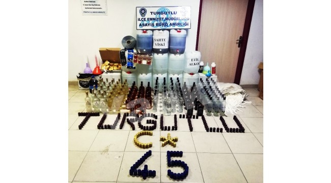 Turgutlu İlçe Emniyet Müdürlüğü Asayiş Büro Amirliği ekipleri, yapılan araştırmalar sonucunda Subaşı Mahallesinde, cezaevi yakınlarındaki bir depoda sahte içki imal ve ticareti yapıldığını tespit etti. Cuma günü akşam saatlerinde depoya operasyon düzenleyen polis ekipleri, 20 adet 100 cl'lik sahte viski, 12 adet 100 cl'lik sahte rakı, 12 adet 70 cl'lik sahte viski, 12 adet 70 cl'lik sahte rakı, 12 adet 70cl'lik sahte rakı, 9 adet bidon içerisinde toplam 224 kg etil alkol, 3 adet bidon içerisinde toplam 93,7 kg açık viski, 1 adet beyaz bidon içerisinde toplam 14,6 kg açık rakı, 4 adet üzerinde Gliserin ibaresi bulunan aroma, 5 litre alkol aroma sıvısı, 2 adet beyaz plastik şişe içerisinde alkol aroma sıvısı ve bir çok etiket ele geçirdi.