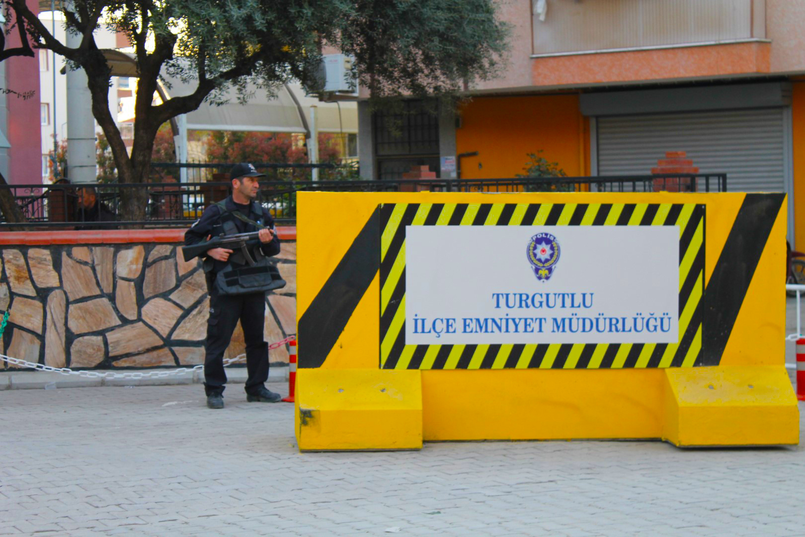 Turgutlu Polisinin tatbikatı heyecan yarattıMANİSA’nın Turgutlu İlçesi’nde Emniyet Müdürlüğü’nün bugün yaptığı polis tatbikatı gerçeğini aratmadı.Bugün Saat 16.00 da Turgutlu'da İlçe Emniyet Müdürü Ahmet Esendemir himayesinde, İlçe Emniyet Müdür Yardımcısı Volkan Parıldar'ın koordinesinde gerçekleştirilen tatbikat halk arasında heyecan yarattı. Hareketliliğin tatbikat olmasın anlaşılması yüreklere su serptiEmniyet Müdürlüğünce gerçekleştirilen tatbikatta önce telsizlerden acil toplanma bölgesine ekiplerin toplanması talimatı verildi. Ardından Turgutlu İlçesi’nin kritik noktaları olan kaymakamlık binası, belediye, emniyet müdürlüğü ile ilçenin ana kavşak giriş ve çıkışlarında ekipler tarafından önlemler alındı. Bazı vatandaşların meraklı gözlerle izlediği tatbikatta Turgutlu da yaşanabilecek herhangi bir durumda polisin hazır kıta beklediği mesajı verilirken, Turgutlulu vatandaşlarda; "Polisimize askerimize güvenimiz tam, Allah onların yardımcısı olsun bizlerde dualarımızla onlara destek oluyoruz" dediler. Doğan ÇİZMECİ
