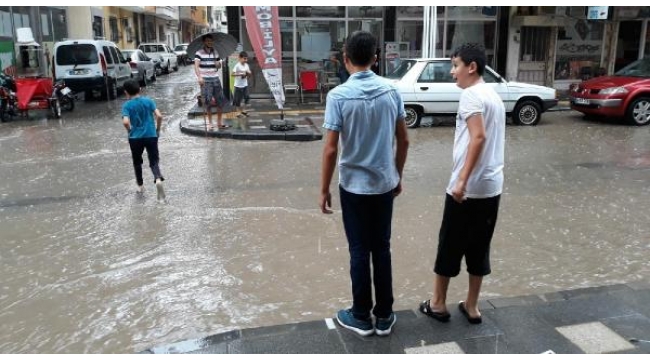 Turgutlu sağanağa teslimMANİSA'nın Turgutlu ilçesinde öğle saatlerinde başlayan sağanak, cadde ve sokakları nehre çevirdi. Bazı ev ve işyerlerini su basarken, sürücüler ve yayalar zor anlar yaşadı.Turgutlu'da öğle saatlerinde başlayan, aralıklarla etkisini arttıran sağanak, hayatı olumsuz etkiledi. Sağanak, kısa bir sürede doluya dönüştü. Yolları dereye çeviren sular, sürücülere zor anlar yaşattı. Polis, sürücüleri dikkatli olmaları konusunda uyarıp, trafik akışını sağlamaya çalıştı. Yağmura hazırlıksız yakalananların duraklara ve saçak altlarına sığındığı görüldü. Bazı kişiler, yağan şiddetli yağmura aldırmadan yollarına devam etti. Bazıları ise yoldaki suyu tahliye edebilmek için tıkalı rögarları kendi imkanlarıyla açmaya çalıştı.Merkez Pazar Camii'nin bahçesinde cuma namazını kılanlar, yağmurdan korunmak için tentelerin altlarına sığındı. Mahallelerde bodrum ve zemin kattaki bazı ev ve işyerlerinde su baskınları yaşandı. Manisa Su ve Kanalizasyon İdaresi (MASKİ) Genel Müdürlüğü, İtfaiye ve Turgutlu Belediyesi Fen İşleri ekipleri, su basan ev ve işyerleri ile yollardaki tıkanan mazgal ve rögarları açmak için çalışma başlattı.
