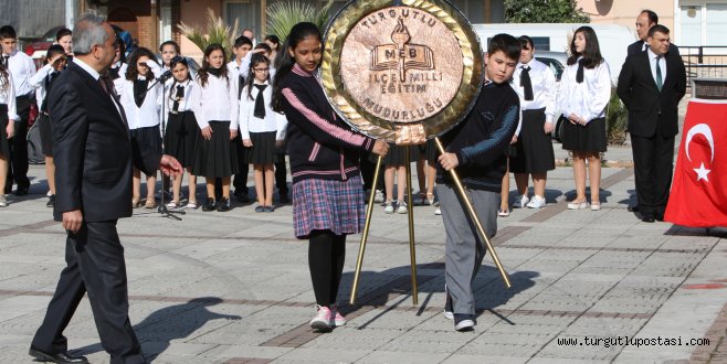 Bu kamsamda ilk kutlama Turgutlu 50 Yıl Atatürk Anıtı’na Turgutlu İlçe Milli Eğitim Müdürü Mehmet Ölmez tarafından çelenk konuldu.Ardından saygı duruşu ve İstikal Marşı okundu.