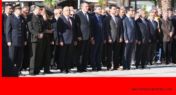 50 Yıl Alan’ındaki saat 09:00 da gerçekleşen çelenk koyma törenine Turgutlu Kaymakamı Nazmi Günlü, CHP Manisa Milletvekili Hasan Ören ,Turgutlu Belediye Başkanı Av.Turgay Şirin , ,Turgutlu Garnizon Komutanı Personel Binbaşı Ömer Haşim Ongun,Cumhuriyet Başsavcısı Mustafa Emre ,Turgutlu İlçe Milli Eğitim Müdürü Mehmet Ölmez ile kamu kurum kuruluşlarının müdürleri siyasi parti ilçe başkanları ve yöneticileri, belediye meclis üyeleri ile sivil toplum kuruluşları temsilcileri katıldı Turgutlu İlçe Milli Eğitim Müdürü Mehmet Ölmez tarafından Atatürk anıtına çelenk konuldu.Ardından Saygı duruşu ve İstikal Marşı okundu.
