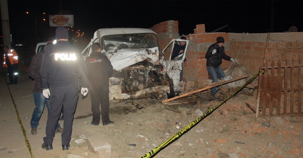 Turgutlu İlçesi'nde meydana gelen kazada, sürücüsünün "direksiyon hakimiyetini "kaybettiği otomobil önce beton direğe daha sonra duvara çarptı, araçtan fırlayan sürü