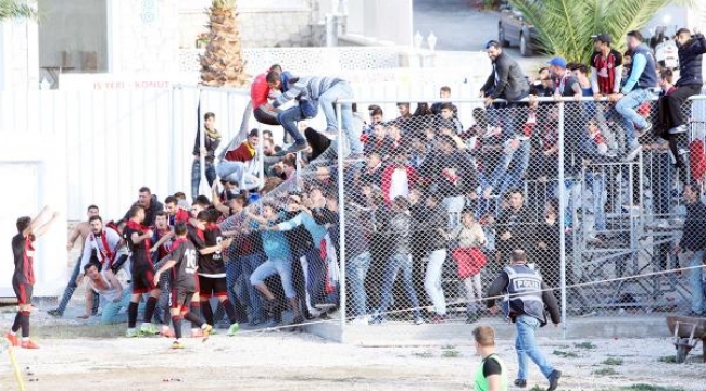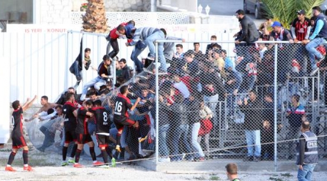 Turgutluspor maçında faciaya ramak kaldı TURGUTLUSPOR, Bölgesel Amatör Lig (BAL) 9'uncu Grup'ta deplasmanda Alaçatıspor'u 1-0 yenerek Ayvalıkgücü Belediyespor'dan liderliği geri alırken kırmızı siyahlı ekibin galibiyet golünün ardından facianın eşiğinden dönüldü. 86'ncı dakikada Kaan'ın ağlara giden vuruşundan sonra Turgutlusporlu futbolcular, gol sevincini paylaşmak üzere taraftarlarının bulunduğu tribüne koştu. Bu esnada Turgutlulu futbolseverler de tel örgüye yüklenince büyük bir yığılma oldu. Olay sırasında ön sıradaki taraftarlardan yere düşenler ayaklar altında kalarak ezildi. Bu arada tel örgünün yıkılması, bir faciayı önledi.Yıkılan tel örgüden saha içine girerek ezilmekten kurtulan taraftarlardan 5'inin hafif yaralandı. Olay yüzünden güvenlik güçleri, maç sonunu beklemeden taraftarları stat dışına çıkardı. Yöneticiler, büyük bir kazayı ucuz atlattıklarını söylediyer.,"Yeniden liderlik kotuğuna oturmak tesellimiz oldu" diyen Genel Kaptan Ayhan Çelikdoğan, "Zor bir deplasmandan 3 puanla döndük. Tek hedefimiz 3'üncü Lig'e dönmek. Bize destek veren tüm taraftarlarımıza teşekkür ediyoruz. Bu hafta sahamızda oynayacağımız Kocaçeşme maçında tribünleri dolu görmek istiyoruz" diye konuştu.NURULLAH ÇANKAYA