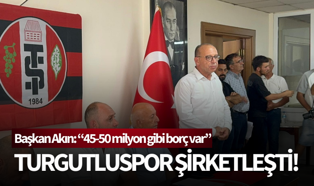 -TFF 3.Lig 4.Grup ekiplerinden Turgutluspor’da şirketleşme için karar alınan olağanüstü genel kurul toplantısı gerçekleştirildi. Futbol A Takımı şubesi aktif ve pasif varlıklarıyla bir bütün olarak 7 Eylül Turgutlu 1984 Sportif Yatırımlar Anonim Şirketine devredildi. Belediye Başkanı Çetin Akın, “Birbirimize çelme takmayı, birbirimizin başarısızlıklarından medet ummayı ve çıkar sağlamayı kimse düşünmesin.” dedi. Başkanvekili İsmet Türker ise, “Turgutluspor 40 yıllık bir çınar. Benim büyük oğlum 40 yaşında. Bundan sonra benim bir çocuğum da Turgutluspor olacak.” diye konuştu. TURGUTLUSPOR’un olağanüstü genel kurul toplantısı, Irlamaz Spor Vadisi Turgutluspor Tesisleri’ndeki kulüp binasında gerçekleştirildi. Turgutlu Belediye Başkanı Çetin Akın’ın da katıldığı toplantı İstiklal Marşı ve saygı duruşuyla başladı.