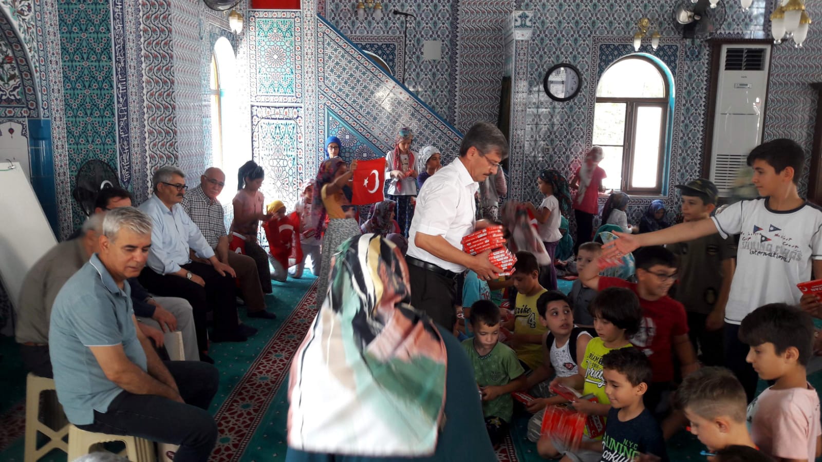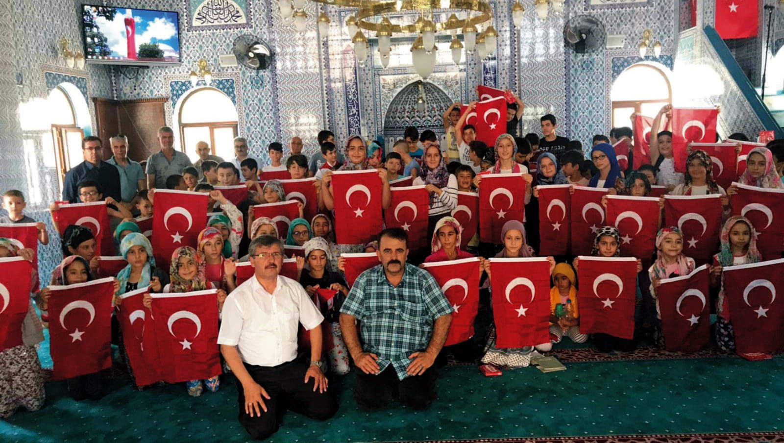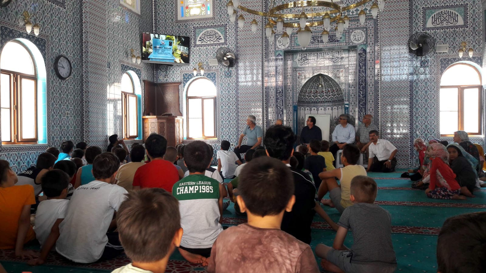 TÜRKİYE HARP MALULÜ GAZİLER, ŞEHİT, DUL VE YETİMLERİ DERNEĞİ TURGUTLU İRTİBAT BÜROSU KURAN KURSU ÖĞRENCİLERİNE ZİYARETTE BULUNDU. Manisa’nın Turgutlu İlçesinde, Türkiye Harp Malulü Gaziler, Şehit, Dul ve Yetimleri Derneği Turgutlu İrtibat Bürosu’ndan Şehit Aileleri ve Gaziler, Hacı Razaman Camiinde öğrenim gören Yaz Kuran Kursu öğrencileriyle bir araya geldiler. Yaz Kuran Kursu öğrencileri Hacı Ramazan Camii İmam Hatibi Recep Tosun’dan aldıkları dini eğitimlerin yanı sıra, Türkiye Harp Malulü Gaziler, Şehit, Dul ve Yetimleri Derneği Turgutlu İrtibat Büro Sorumlusu Gazi. P.Kd.Ütğm. Turgut Gürkaş tarafından sunumlar eşliğinde Şehitlik, Gazilik, Vatan, Bayrak ve Millet kavramları konusunda bilgilendirildi. Daha sonra, Camii İmam Hatibi ve Kurs öğrencileri tarafından, tüm Şehitler ve Rahmeti Rahmana Kavuşan Gaziler, okunan Kuran Tilaveti ve dualarla yad edildiler. Camii İmam Hatibi Tosun öğrencilerle birlikte, Şehit Ailelerine ve Gazilere hediye takdiminde bulunurken, Şehit Aileleri ve Gazilerde kurs gören tüm öğrencilere Türk Bayrağı armağan ettiler. Camii İmam Hatibi Tosun, “Şehit yakını ve Gazilerimiz tarafından, camilerimizde dini konuların yanında milli konular Vatan, millet, bayrak, şehitlik, gazilik sevgisinin çocuklarımıza anlatılması milli konulardaki hassasiyeti fazlalaştırır.” Diyerek Şehit Yakınlarına ve Gazilere teşekkür etti.