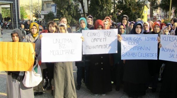 Tekbir getiren katılımcılardan basın açıklamasını okuyan Eğitim Bir Sen İlçe Başkanı Hasan Tanrıkulu “Cumhuriyet Gazetesi’nde Hz Muhammed’in(Sav) sureti olduğu iddia edilen karikatürleri sansürsüz olarak yayınlamışlardır. Toplumun dini hassasiyetlerini göz önünde bulundurduğumuzda , infial yaratan bu olaya kayıtsız kalmamız mümkün değildir. Hakaret içerikli bu eylemle ilgili halkı kin ve düşmanlığa tahrik etmek, dini değerleri aşağılamak sebebiyle buradan ilgililere suç duyursunda bulunuyoruz”dedi. (Haber Merkezi)