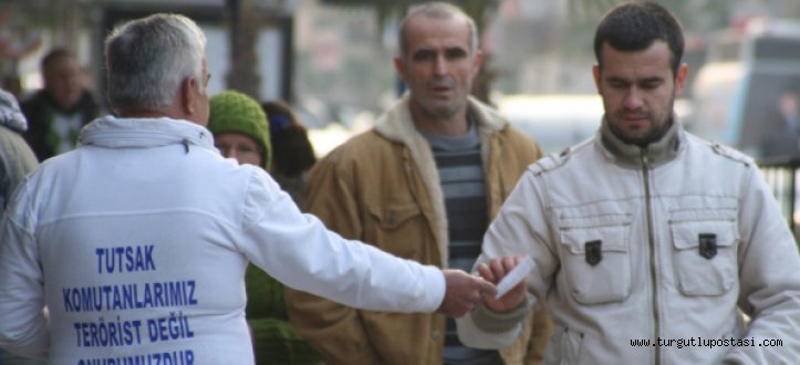 MANİSA'nın Turgutlu İlçesi'nde, 2 çocuk babası, emekli işçi Süleyman Taşezen, Ergenekon ve Balyoz davalarında tutuklu bulunan komutanlara destek vermek için tek kişilik eylem yaptı, broşür dağıttı.