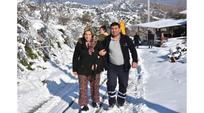 MANİSA'nın Salihli ilçesinde, kar yağışı nedeniyle yolu ulaşıma kapalı olan Burhan Mahallesi'nde mahsur kalan böbrek hastası Ümmü Gökmen (35), Salihli Belediyesi ekiplerinin yardımı ile diyaliz merkezine ulaştırıldı.Salihli'ye 17 kilometre mesafedeki Burhan Mahallesi'nde yaşayan ve 3 yıldır böbrek yetmezliği rahatsızlığı olan Ümmü Gökmen'in tedavisi için diyaliz merkezine gitmesi gerekti. Ancak mahallenin yolu, kar nedeniyle ulaşıma kapalı olduğu için kendisini dilayiz merkezine götürecek olan hasta nakil aracı gelemedi. Bunun üzerine Salihli Belediyesi Kırsal Hizmetler Müdürlüğü ekiplerinden yardım istendi. Kırsal Hizmetler Müdürlüğü ekipleri, dozer yardımyla karla kaplı yolu ulaşıma açtı. Ümmü Gökmen, evden alınarak, diyaliz merkezine götürüldü.DHA