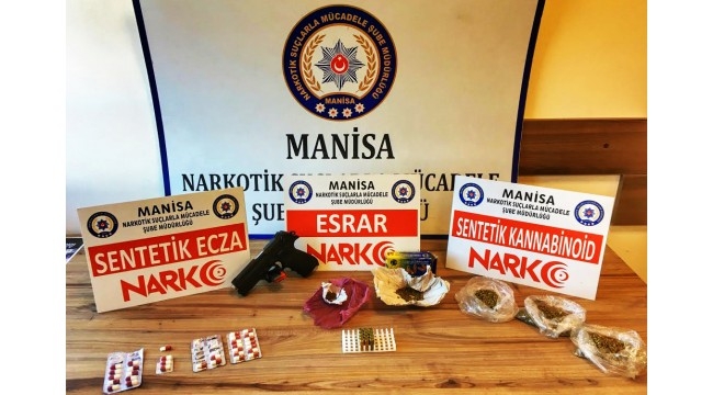 MANİSA’da, İl Emniyet Müdürlüğü ekiplerince uyuşturucu veya uyarıcı madde imal ve ticareti yapan şahıslara yönelik 3 adreste eş zamanlı olarak operasyonda 3 şahıs yakalandı. Aramalarda, çeşitli miktarda uyuşturucu maddesi ve 1 adet ruhsatsız tabanca ele geçirildi.