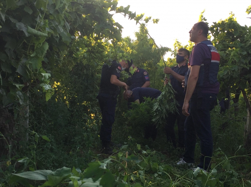 MANİSA'nın Alaşehir ilçesinde, jandarma ekiplerince yapılan operasyonda, üzüm bağı içerisinde 1924 kök Hint keneviri ve 5 kilogram kubar esrar ele geçirildi. Bağ sahibi M.K.'yi yakalamak için ise çalışma başlatıldı.