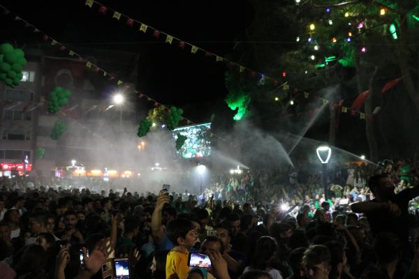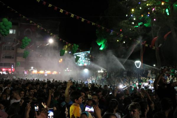 Üzüm festivaline katılanların üzerine maden suyu sıkıldı MANİSA'nın Alaşehir ilçesindeki 1. Uluslararası Kültür, Sanat ve Üzüm Festivali'nde düzenlenen 'yeşil parti', eğlenceli anlara sahne oldu. Merve Özbey ve Emre Kınay konserinin ardından konsere katılanların üstüne ise Alaşehir'in ünlü maden suyu fışkırtıldı. Sırılsıklam olan vatandaşlar ise eğlenceye ara vermedi.Alaşehir'de bu yıl ilk kez, Uluslararası Kültür, Sanat ve Üzüm Festivali düzenlendi. Festival renkli anlara sahne olurken, ilçede coşku zirveye çıktı. 30 Ağustos'ta start alan festivalin 4'ncü gününde 'yeşil parti' düzenlendi. Alaşehir Demokrasi Meydanı'nda toplanan kalabalık, önce DJ Bora Yemenoğlu'nun performansıyla eğlendi. Etkinliğe katılanlara, yeşil parti konseptine uygun olması için yeşil tişörtler dağıtıldı. Alanı dolduran Alaşehirliler, şarkılara oynayarak eşlik etti. DJ performansının ardından Emre Kınay ve Merve Özbey sahne aldı. Şarkıcıların seslendirdiği parçalarla Alaşehirliler, coştu.Alaşehir Belediye Başkanı MHP'li Ali Uçak, konseri vatandaşların bulunduğu alanda izledi. Konserin sonunda sahneye çıkan Başkan Uçak, Emre Kınay ve Merve Özbey'e teşekkür etti. Ünlü şarkıcılara Alaşehir'de yetişen üzümlerden hediye eden Uçak, yeşil parti konseptini anlattı. Uçak, "Yeşil bizim hayatımız, emeğimiz, kaderimiz, üzümümüzdür. Biz bu festivale başlarken bir hayalle yola çıktık. Üzümümüzü, maden suyumuzu ve Alaşehir'i dünyaya tanıtmak için yola çıktık. Her şey çok güzel olacak. Yeter ki bizler birlik beraberlik içinde olalım. Üzerimize gelen dış güçler gelsinler, buradaki birlik ve beraberliği görsünler. Alaşehir'deki mutluluğu, huzuru görsünler" diye konuştu.MADEN SUYU FIŞKIRTILDIKonserin sonunda konser alanının çeşitli noktalarından halkın üstüne maden suyu fışkırtıldı. Hareketli şarkılar eşliğinde maden suyuyla ıslanan Alaşehirliler ara vermeden eğlenmeye devam etti.